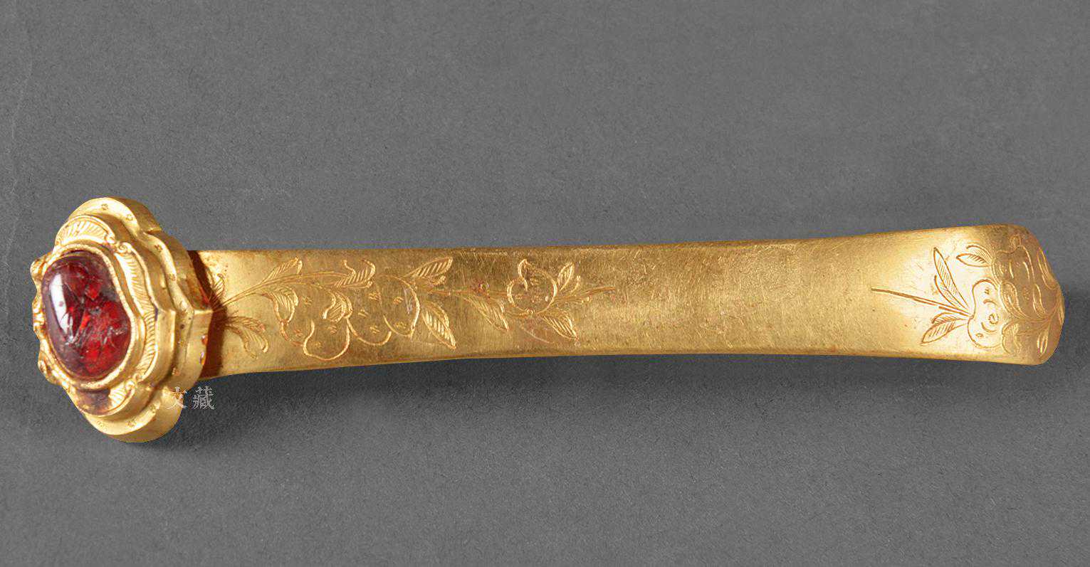 清金嵌宝扁簪苏州吴县毕沅墓出土南京博物馆藏