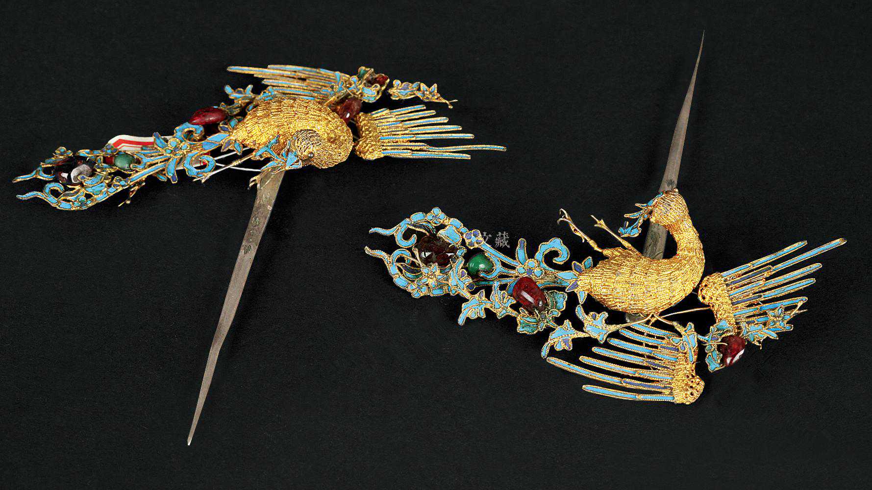 清金点翠镶宝凤簪(对)苏州博物馆藏