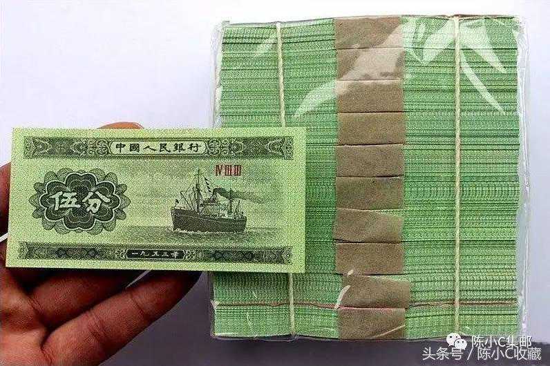 值得一提的是,现在市场上普遍见到的一箱、一包的纸币,几乎只有分币、四版或五版纸币。因为三版之前的全新纸币已经分散沉淀,市场上数量很少了。