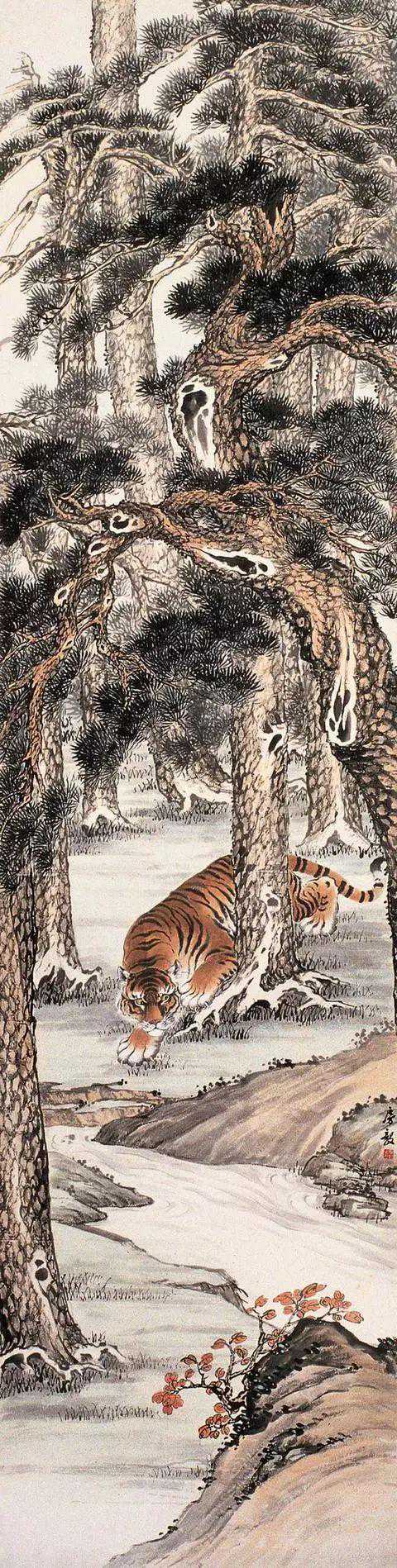 房虎卿(1889-1979),初名毅,号房山。武进夏溪人。曾任常州市政协委员、市国画院联谊会副主任、江苏省文联委员、省国画院画师等。房虎卿擅长山水、松石、蔬果、花卉,尤善画墨龙和虎,令人叹绝,名噪国内。他画虎定要画出老虎凶悍的特性,造型姿态威武得体,包括虎毛的用笔,劲峭有力,画得逼真,周围环境的气氛烘托,使人觉得有几分胆寒,百兽之王被他画得虎虎有生气。他的花鸟画也很有特色,用色清雅,布白严谨,生动活泼,是典型的“海派”画风。