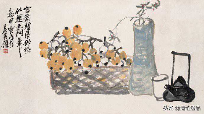 菜蔬果品如竹笋、青菜、葫芦、南瓜、桃子、枇杷、石榴等也一一入画,极富生活气息。推崇周闲果蔬风格,作品色墨并用,浑厚苍劲,对于近世花鸟画影响深远。定居上海后,多与王一亭合作,王一亭绘画,吴昌硕写题,“王画吴题“风行一时,有”海上双壁”之誉。