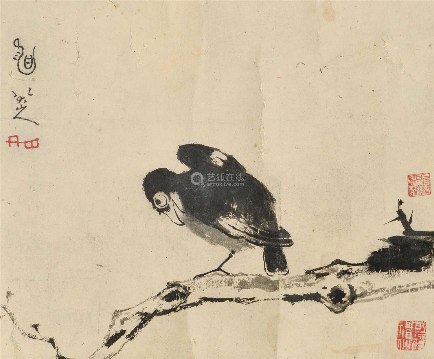 4、他最明显也是最多被人乐道的是他画的鸟兽虫鱼眼睛都向上,露出很多眼白,给人以孤傲愤懑之感,这与他本人的独特身世有关,已经被许多八大专家多次解读过,此不再赘言。