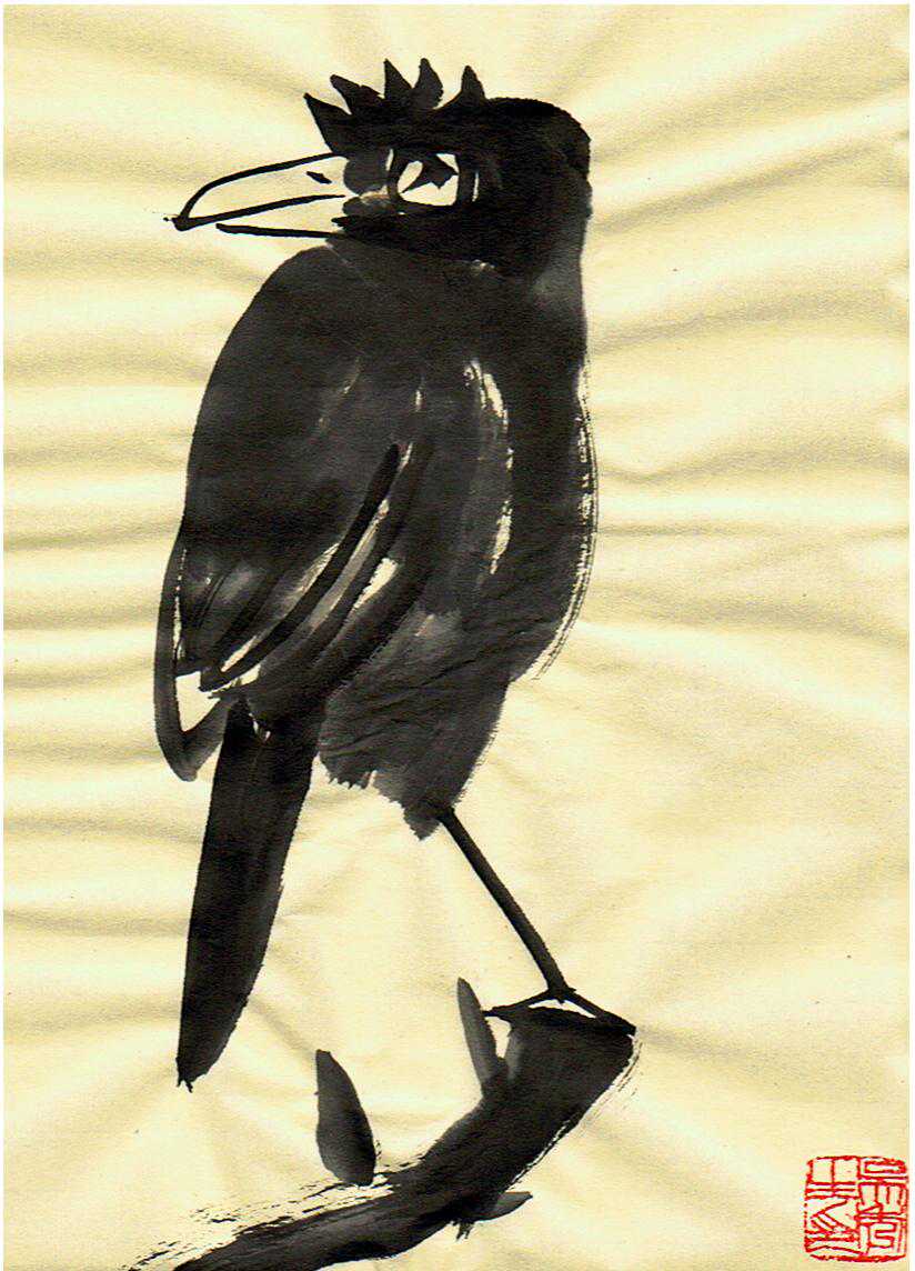 从八大的作品中能感受到他对于笔墨语言的运用轻松自如已经达到了无我的境界,但他完全不是在刻意卖弄笔墨,而是将精神重点集中在对于物象传神刻画上。他擅长画鸟,在他的笔下鸟嘴、翅、足都画的挺健硬朗,用墨也很干很浓,而在画鸟的绒毛时又表现的很蓬松柔软,用墨也相对很淡很湿。这种对比关系无疑提升了艺术之美,也是中国人追求的那种集阴阳于一体的和谐之美,这种美的内涵就是中国画追求的境界,也就是所谓的笔墨问题的精髓所在。