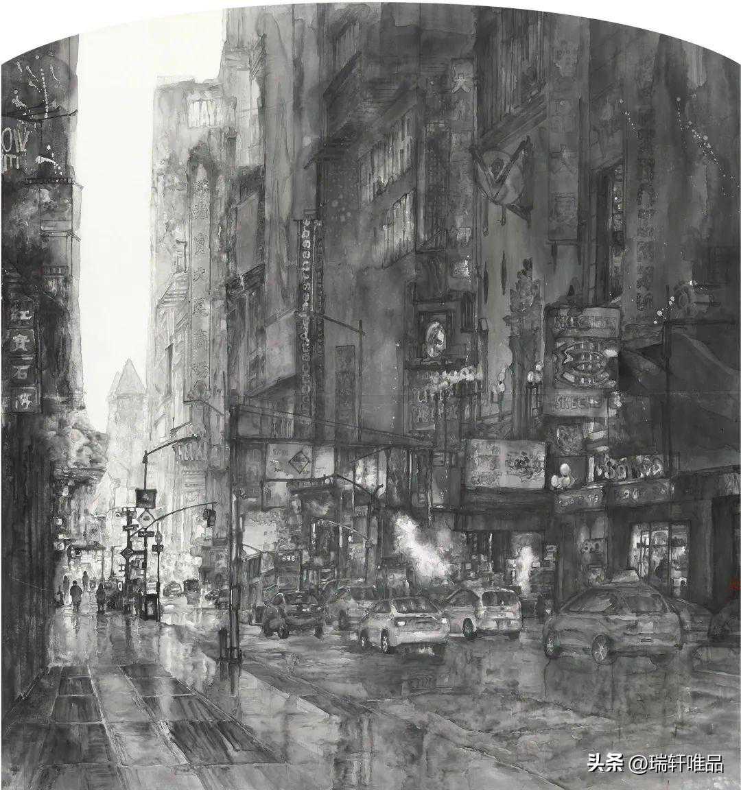 王晨雨中的曼彻斯特200cm×123cm