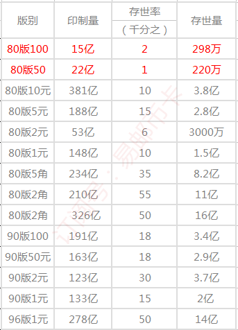从公开的信息分析数据来看,802在四版币中存世量位居第三位: