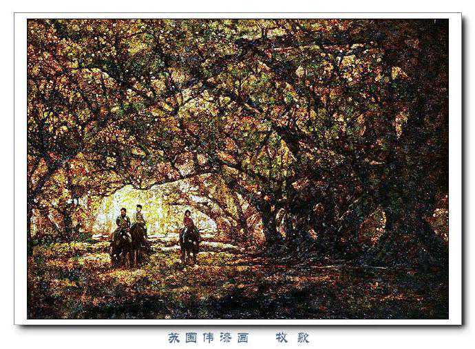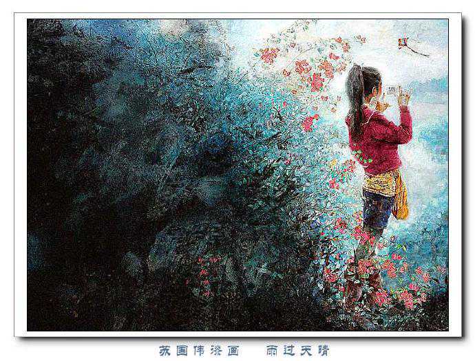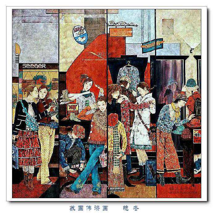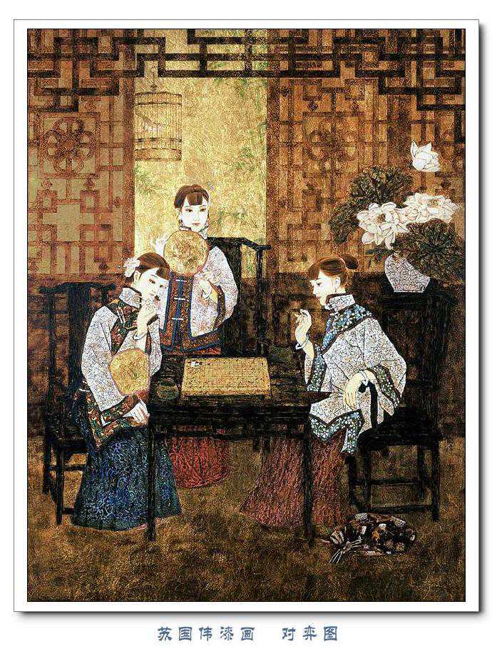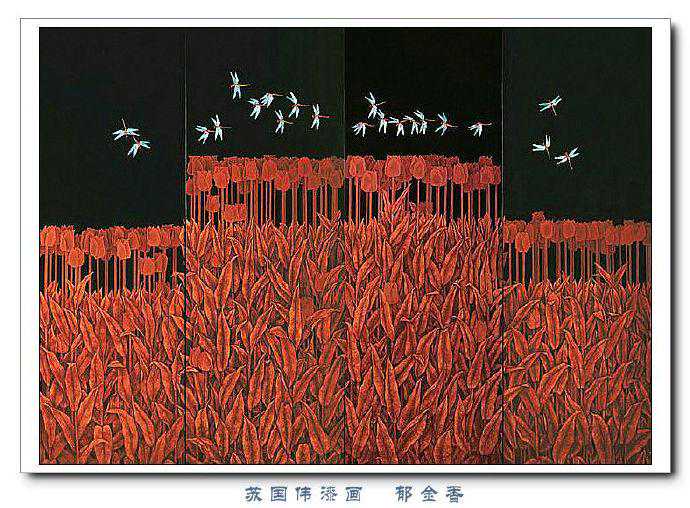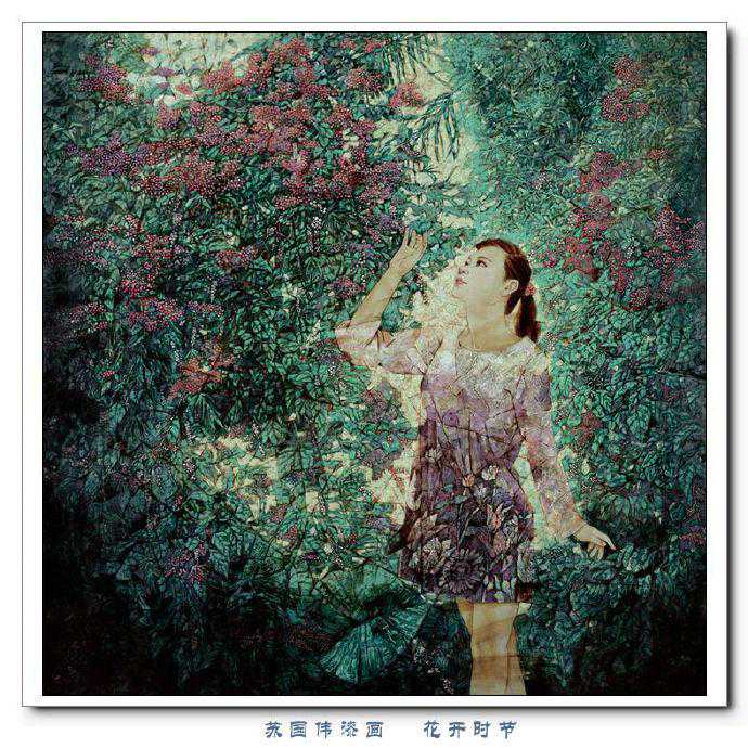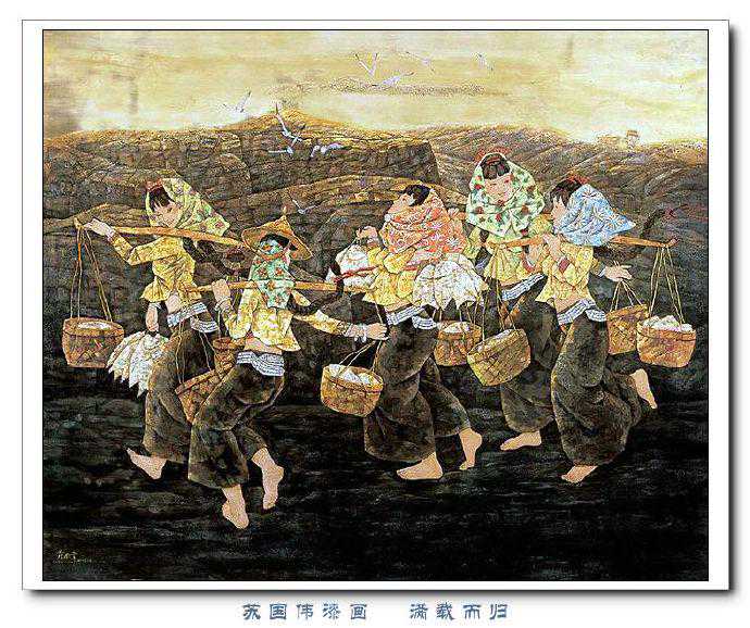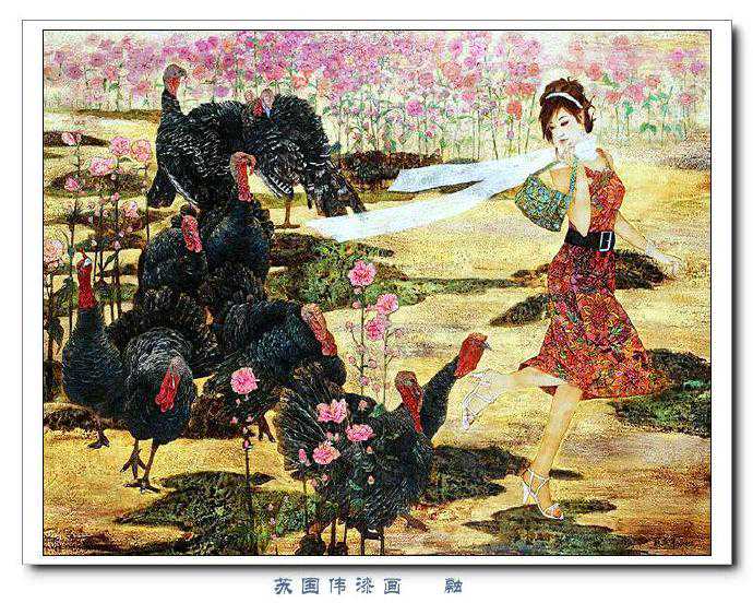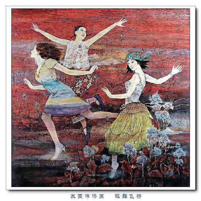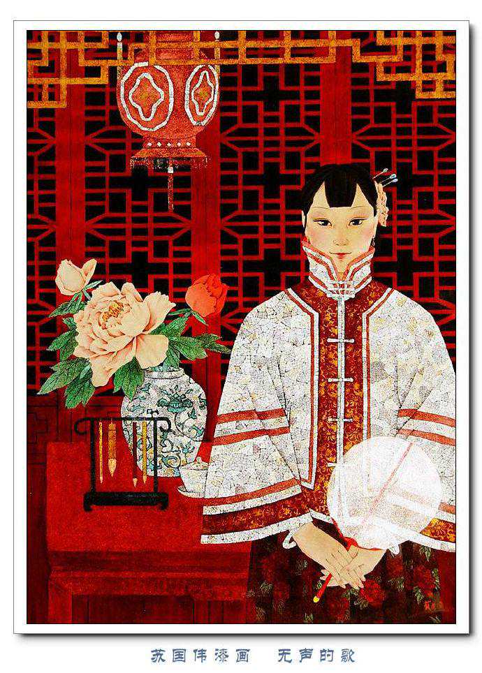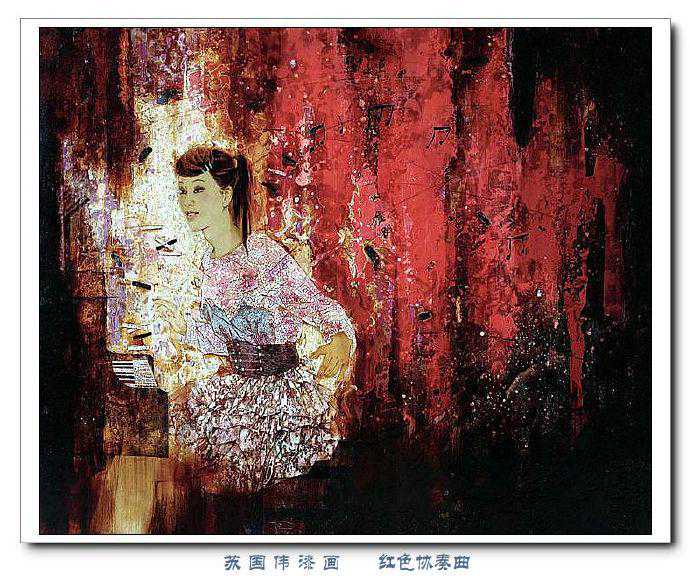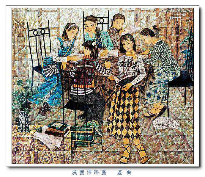 苏国伟从国画、油画、版画等中西方绘画领域中吸收养分,用漆画技法进行自己的诠释和演绎,让漆画更具艺术性。苏国伟擅长人物题材漆画,此类作品画面构图自由活泼,对作品人物的刻划细腻独到,对色彩应用以暖色为主,表现出浓郁的生活气息和较强的感染力。苏国伟花鸟漆画作品形式奔放,构图形散神聚,细致入微,栩栩如生。苏国伟的风景漆画作品多以客家或闽南地域风土为主,画面营造出宁静、深幽的意境,并将中国传统漆艺术沉稳厚重的质感融入作品,传达出画家对家乡的深深眷恋。在近年的作品中,苏国伟在画面形式、肌理、漆艺、材料等方面都进行了不断改革,拓展漆画艺术语言的表现力,努力追求“艳而不厌、繁而不烦”的美学效果。