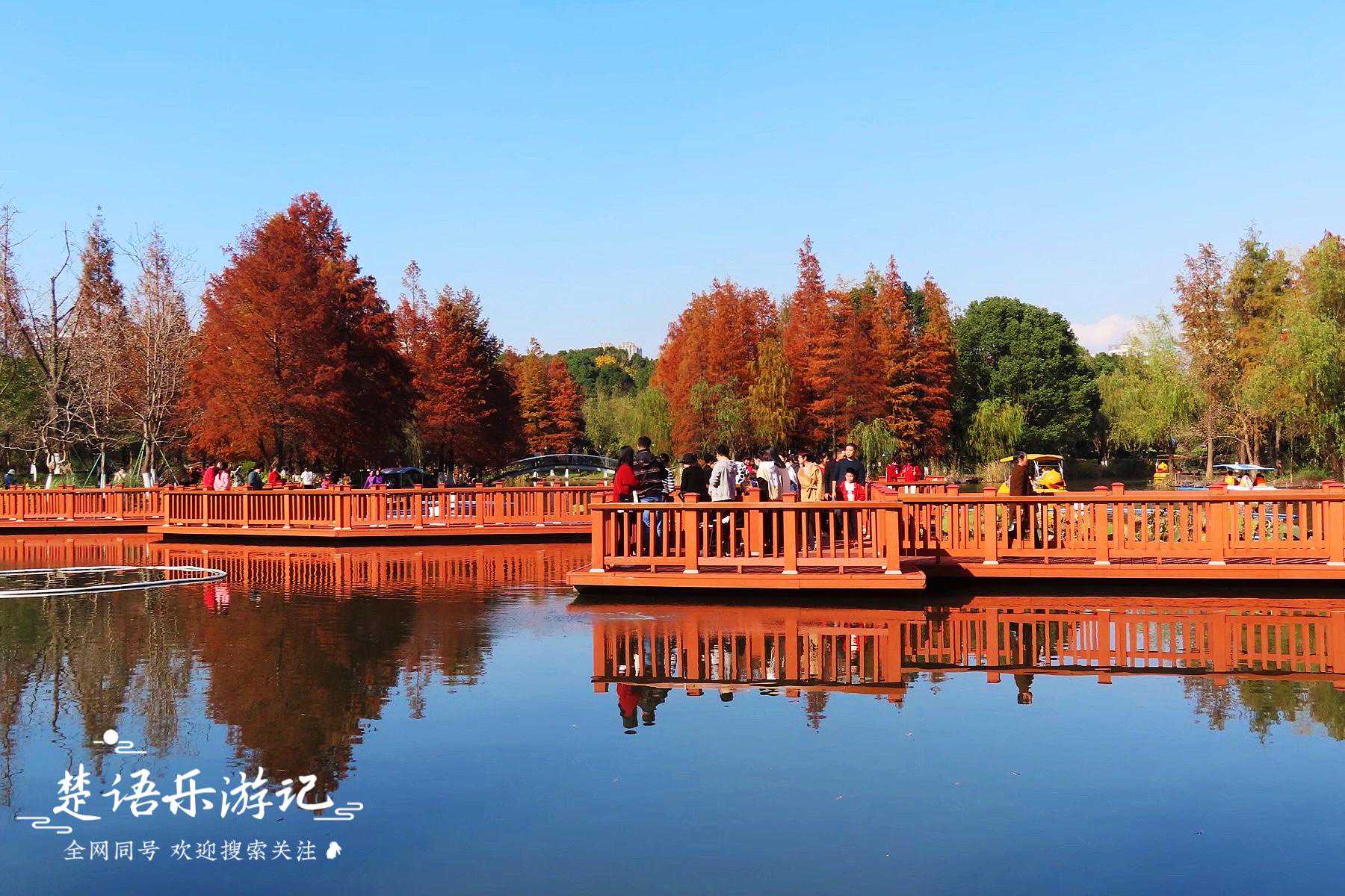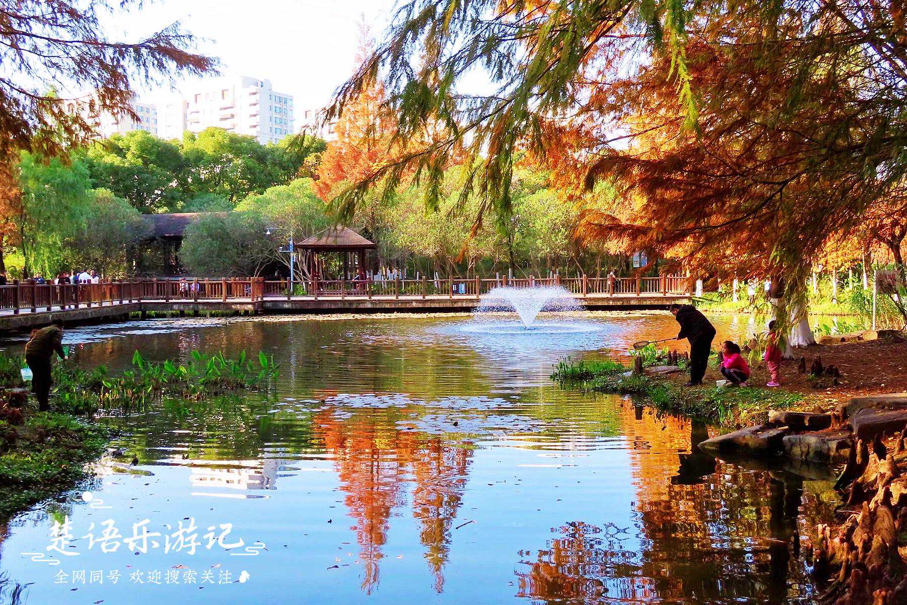日湖公园的西北侧也有一片水杉林,是宁波市区另一个人气比较旺的红杉欣赏胜地。这里的红杉林中有几条观景步道,且林中有湖,湖边有亭,亭前有溪,极为诗意。人们在溪亭和林中游走,回首驻足间拍下来都是唯美风光。
