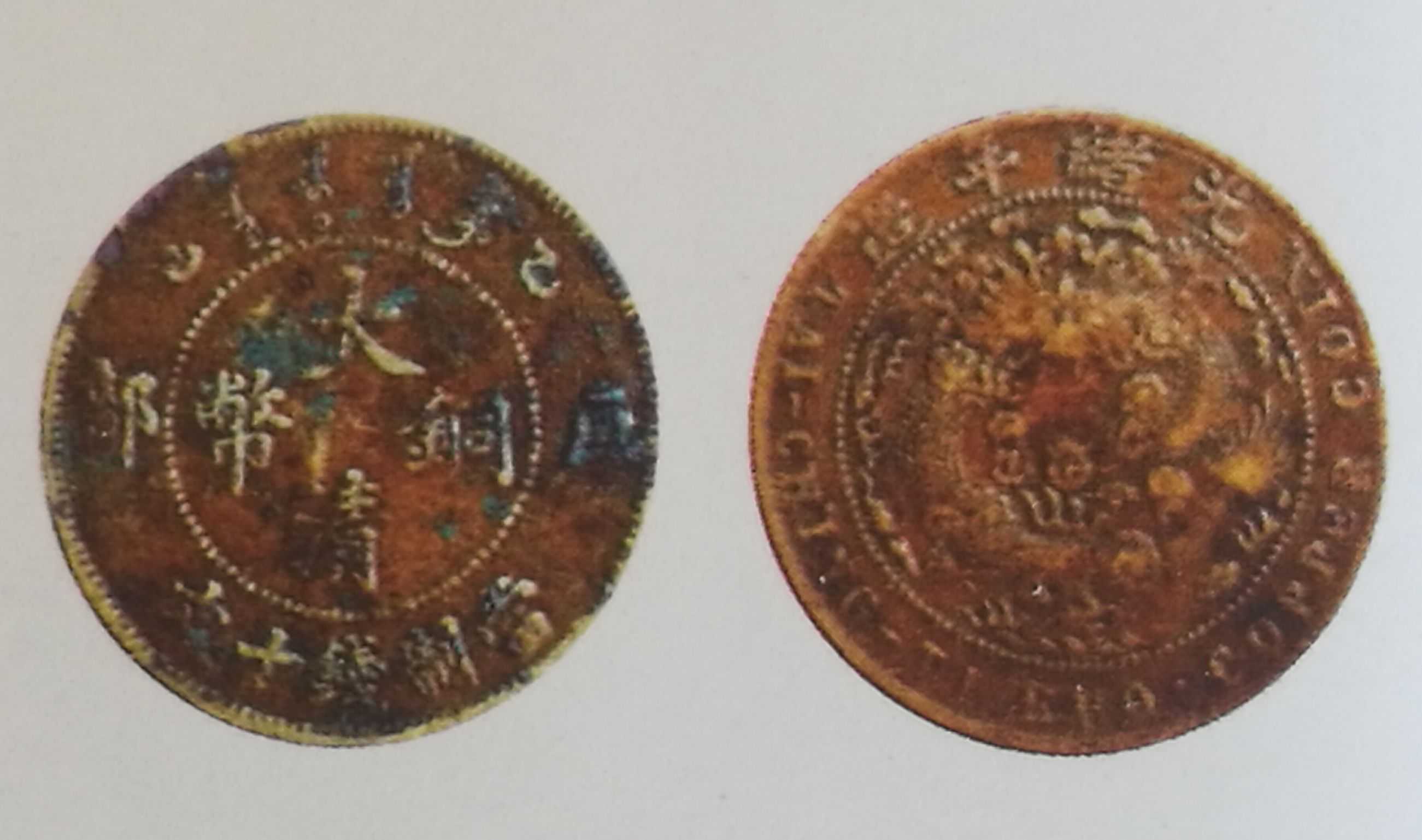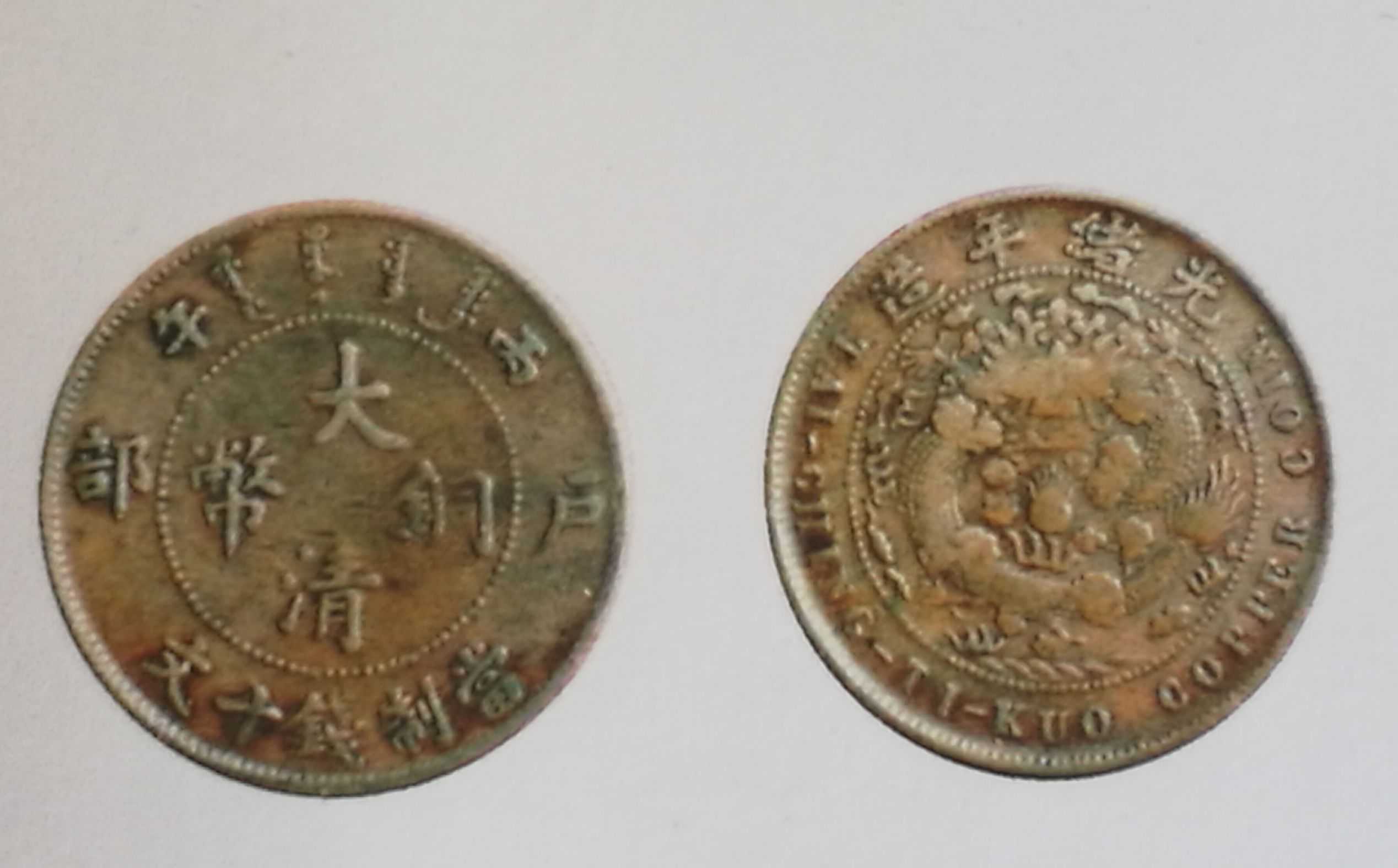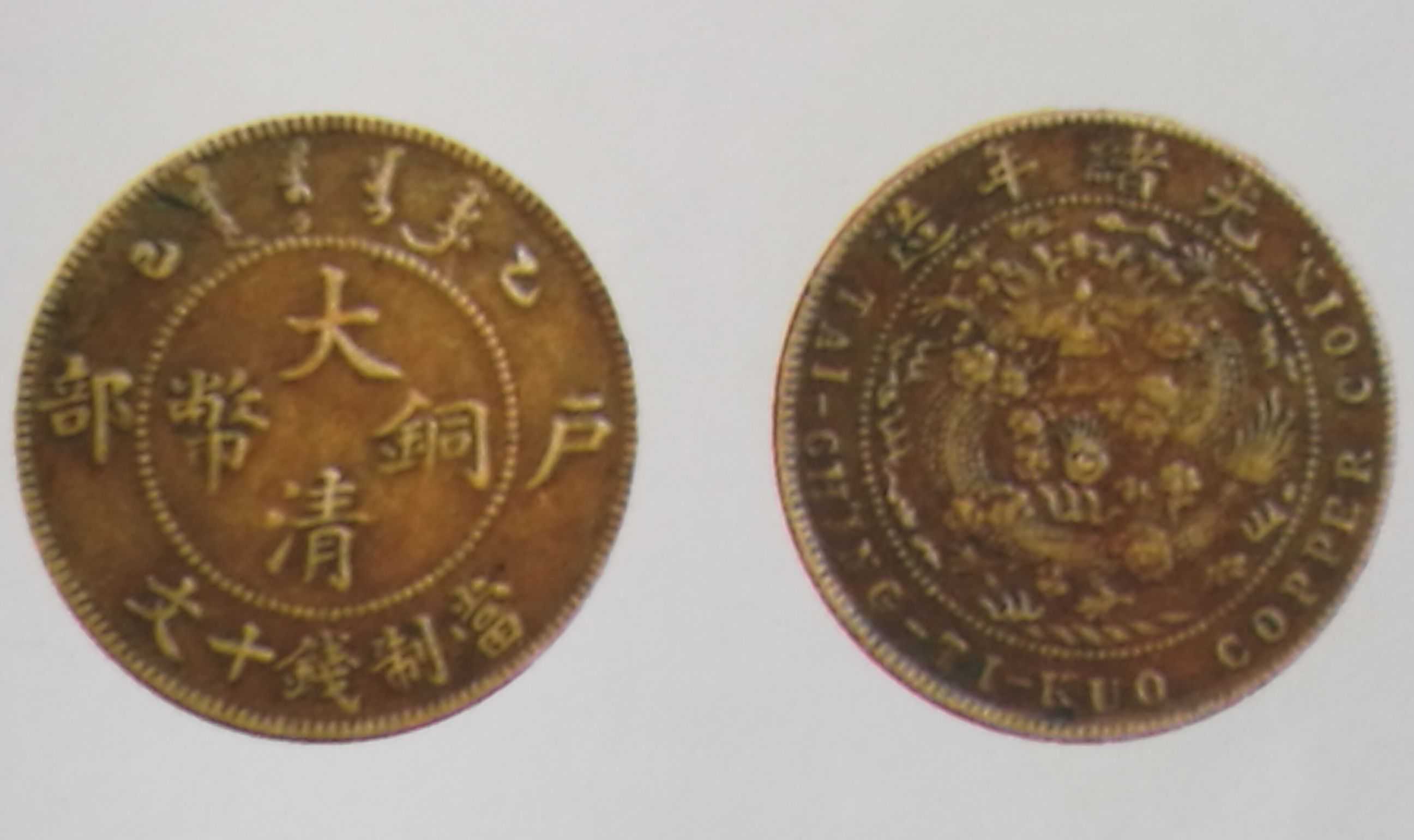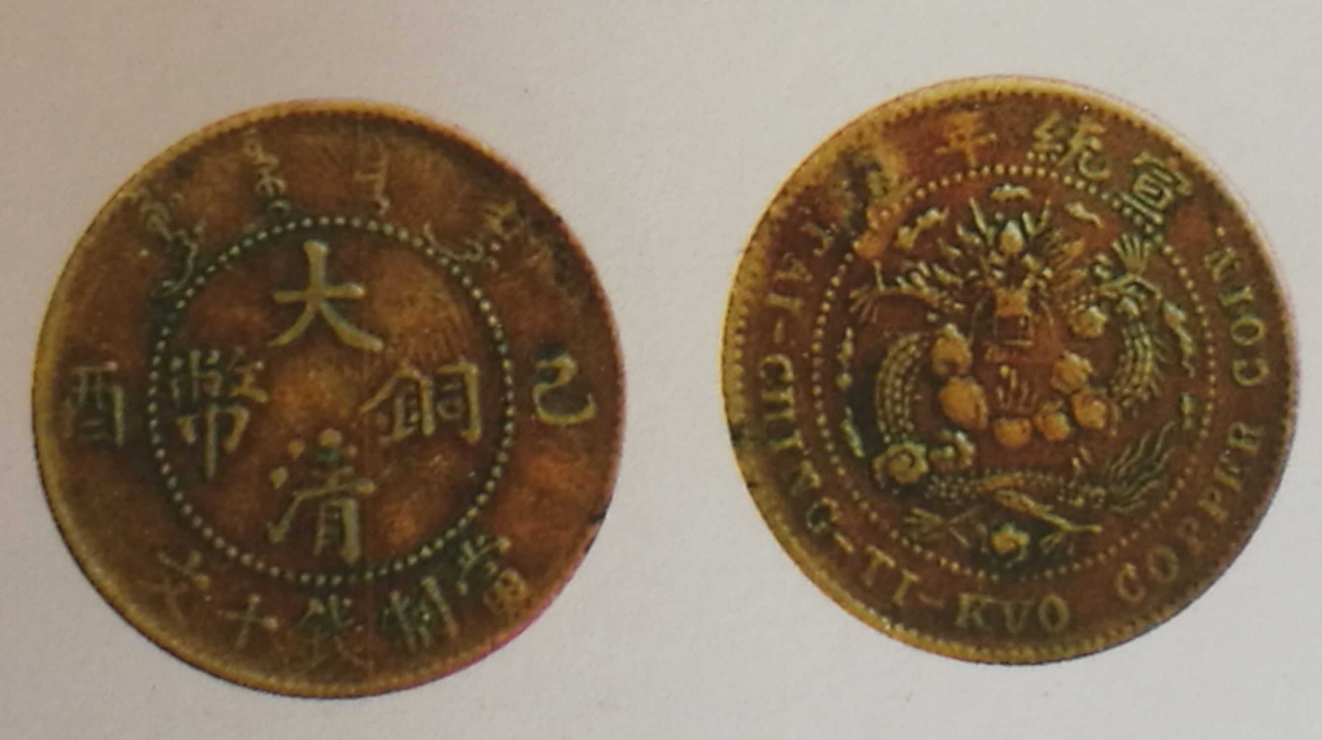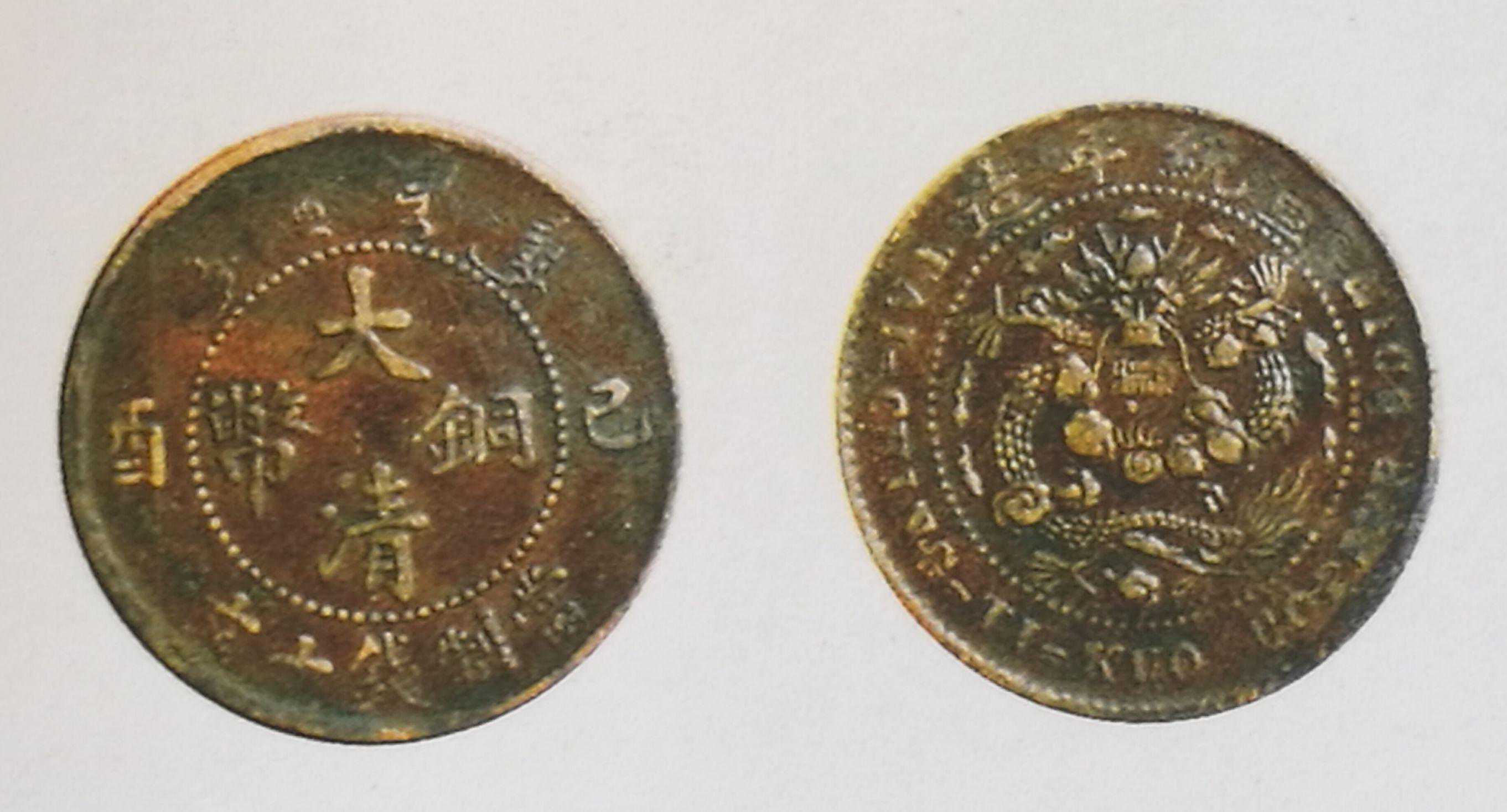 户部大清铜币乙酉十文,混配光绪三点星大火珠清龙,稀少品种,六级币,市场价上品1500元,上图品相为近极美品,6000元。