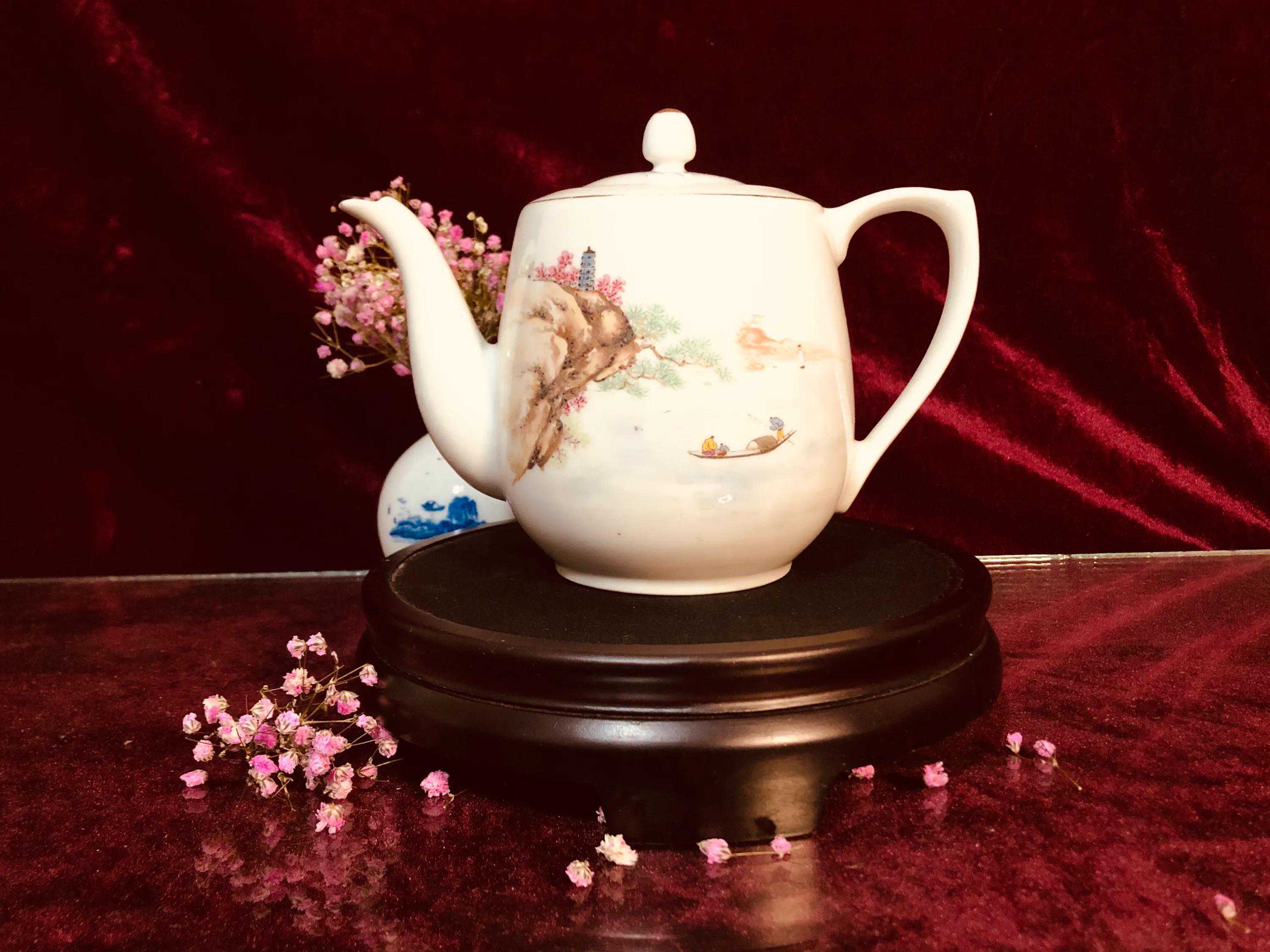 经过一系列紧张、周密、细致有序的精心安排,上百种器型各异,画面有粉彩、新彩、青花等精致的特制第一批功夫茶壶,成功地圆满完成。按与台商签订的交货时间,在厦门与台商交接,就在我们守信,用完美、精彩绝伦的产品,按时按质地摆在台商面前时,出现了小插曲;台商在付款时,未按合同价格付款,要求再优惠。(此时无商不奸体现的淋漓尽致)就在僵持着的时候,恰逢当时的江西省陶瓷公司一把手徐总,正在厦门出差,经过他的协调,最终以每把茶壶在原订价格的价位上,再让利三分之一给台商(确切地说是每把壶让利一千元,那可是宣传万元户的年代啊!)我想当年一把手作出让利决定的时候,可能包含对台胞的那份特殊感情吧。