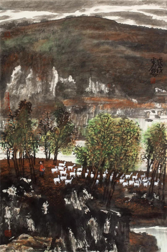 纵观曾宪锦老师的绘画艺事,看似是创作风格的延续,其实更是他对艺术本体及精神家园中蕴含的图式精神的思考。在对当下文化境遇的思考过程中,触动着诸多不会湮灭在尘埃中的绿色家园。