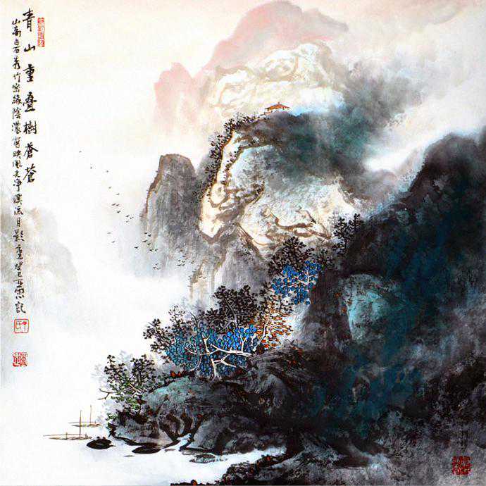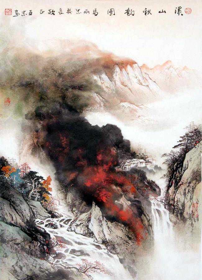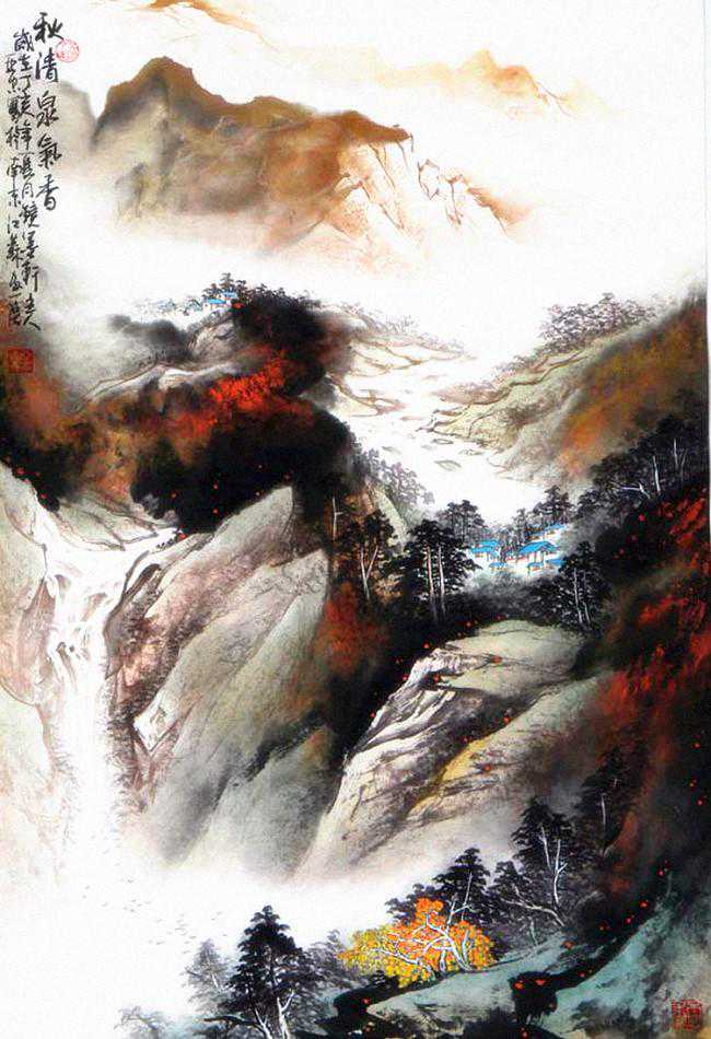 丁亚忠的山水画主要是以祖国大好河山为题材,在技法上吸取张大千、刘海粟、宋文治、黎雄才、白雪石、傅抱石等名家不同风格的艺术精华,在大自然的造化下独具风格、自成一家。丁亚忠用笔刚劲、墨迹豪放、色彩浓烈、气势撼人。作品中既有八大山人的豪放、石涛的野逸,也有黎雄才、张大千的苍润、黄宾虹的厚重、傅抱石的潇洒以及潘天寿的霸气。丁亚忠之画风,具有传统气息,却不为传统所束,广临诸家,博采众长。渐年又遍阅画理史论,以辅蒙养,旅登五岳,临黄山、游三峡、泛五湖,多处写生,搜尽奇峰,历练学养、纳古收今、中西合璧、独具匠心,尤以泼墨泼彩胜出,更是艳丽中透古雅,自得天然气韵,为之一绝。