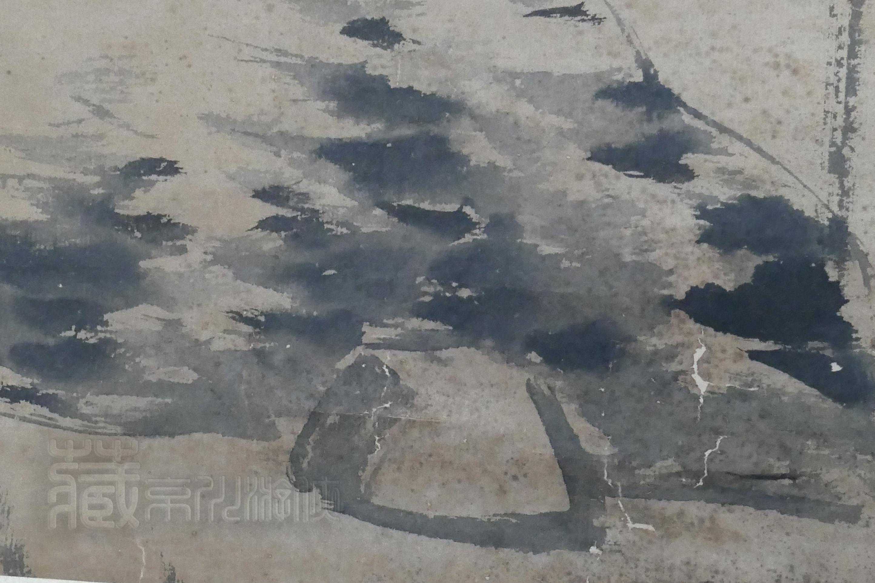 上述之印,虽然仅四方,然印色老旧,显示经年特征鲜明。其中,八大山人自用印印色更为陈旧,清仪阁藏印相对陈旧感逊之,显示其乃不同时期所钤,非同时所钤矣。复而再观其纸本,完幅整体,然纸张陈旧感明显,亦见自然破损和潮湿侵蚀瘢痕破损之处。本幅作品,乃为愚后修裱之。