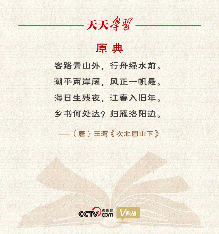 颈联“海日生残夜,江春入旧年”被后人视为盛唐气象的标志:残夜未尽,一轮红日已从海上喷薄而出,旧年未去新春就已光临人间。这两句诗得到了当时宰相张说的极度赞誉,并亲题于政事堂上,“令为楷式”。尾联“乡书何处达?归雁洛阳边”照应首联,诗人目送归雁,思绪自然由眼前的江南春色跳接到千里之外的洛阳,不由得萌生出怀乡之情。