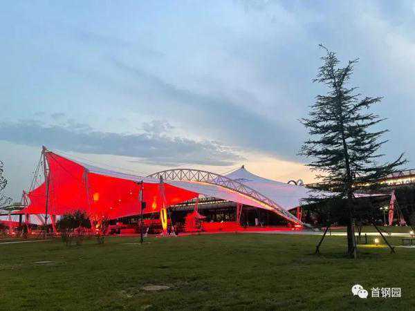 开放式展馆采用装配式张拉膜结构,避免对原有地面的改动。展馆的膜结构屋顶设计充分利用自然采光,最小限度索取能源,为会展提供服务空间。
