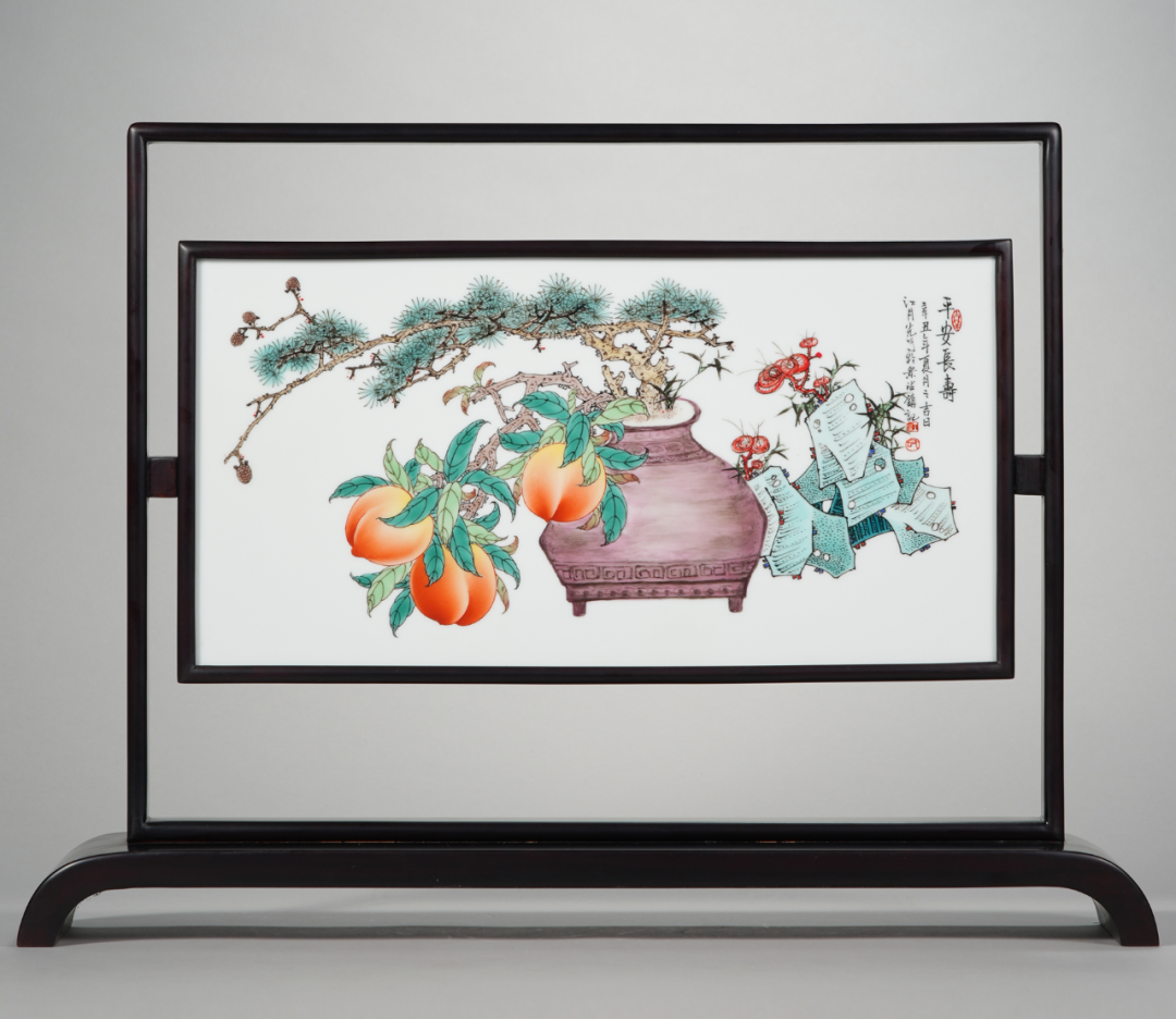 款识:“平安长寿。辛丑年夏月之吉日。江月光写于景德镇记。”