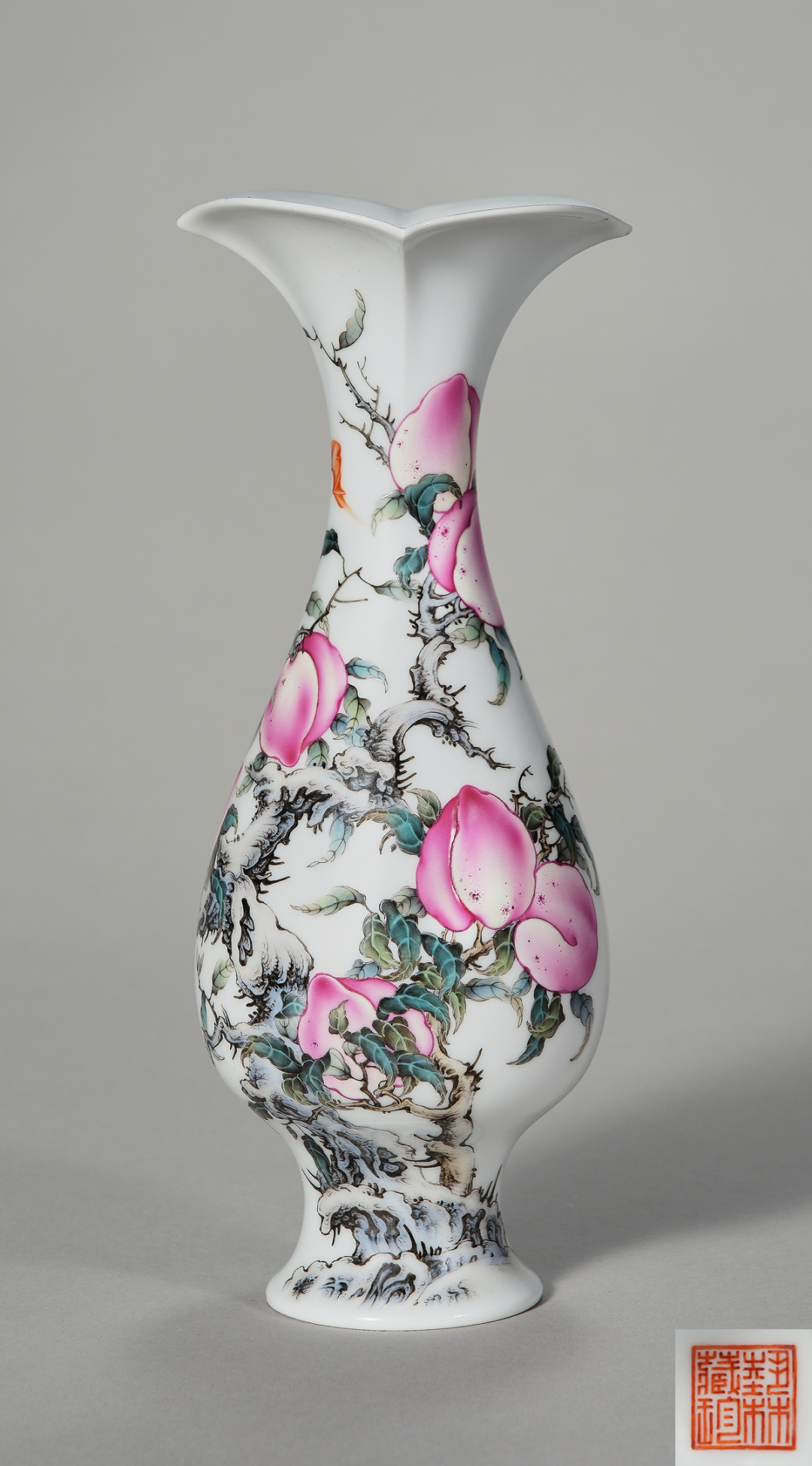 艺林藏珍粉彩壬寅九桃五福花口花插