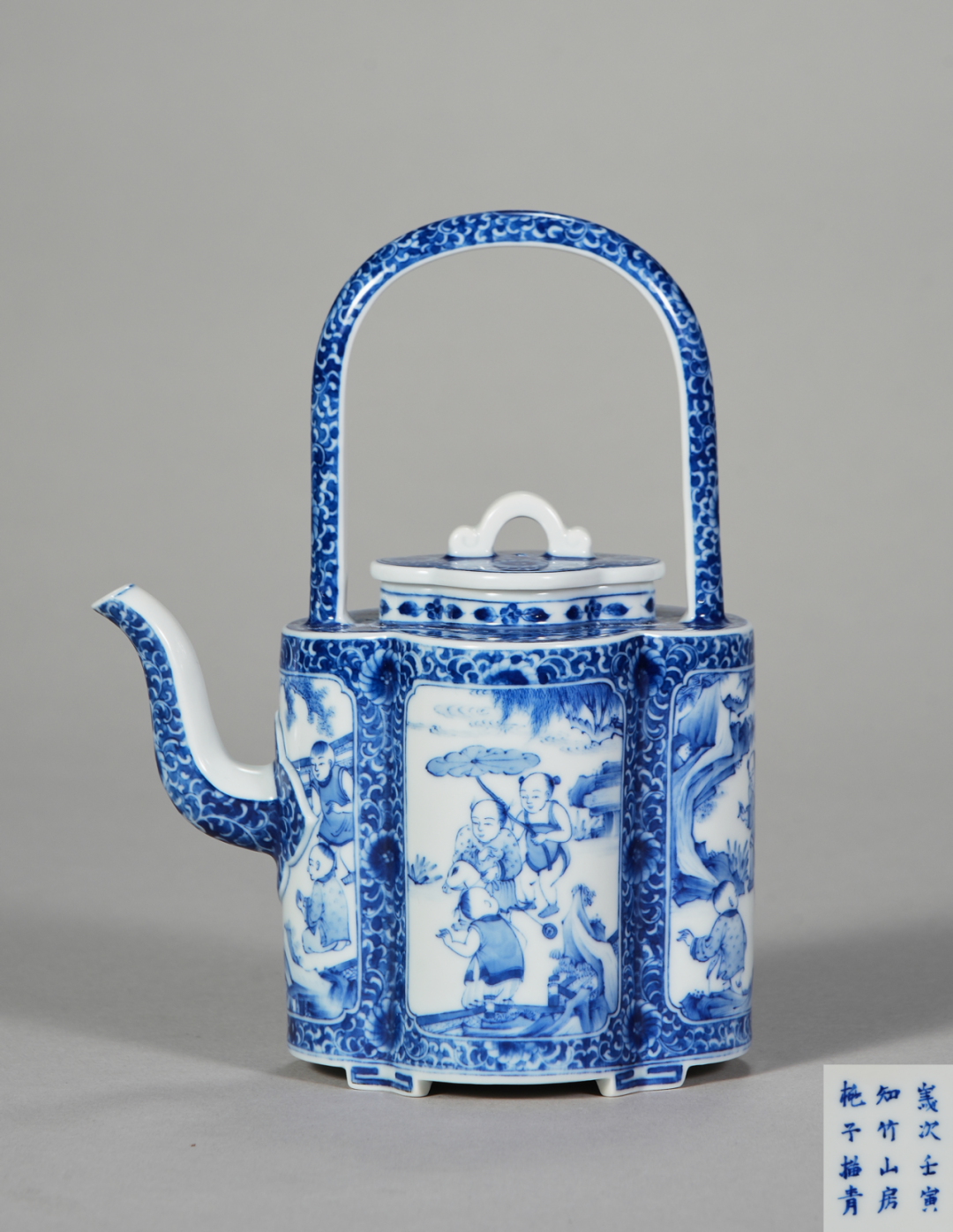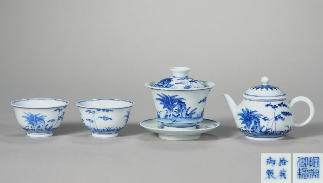拾英御制青花竹石芭蕉纹茶具一组四件