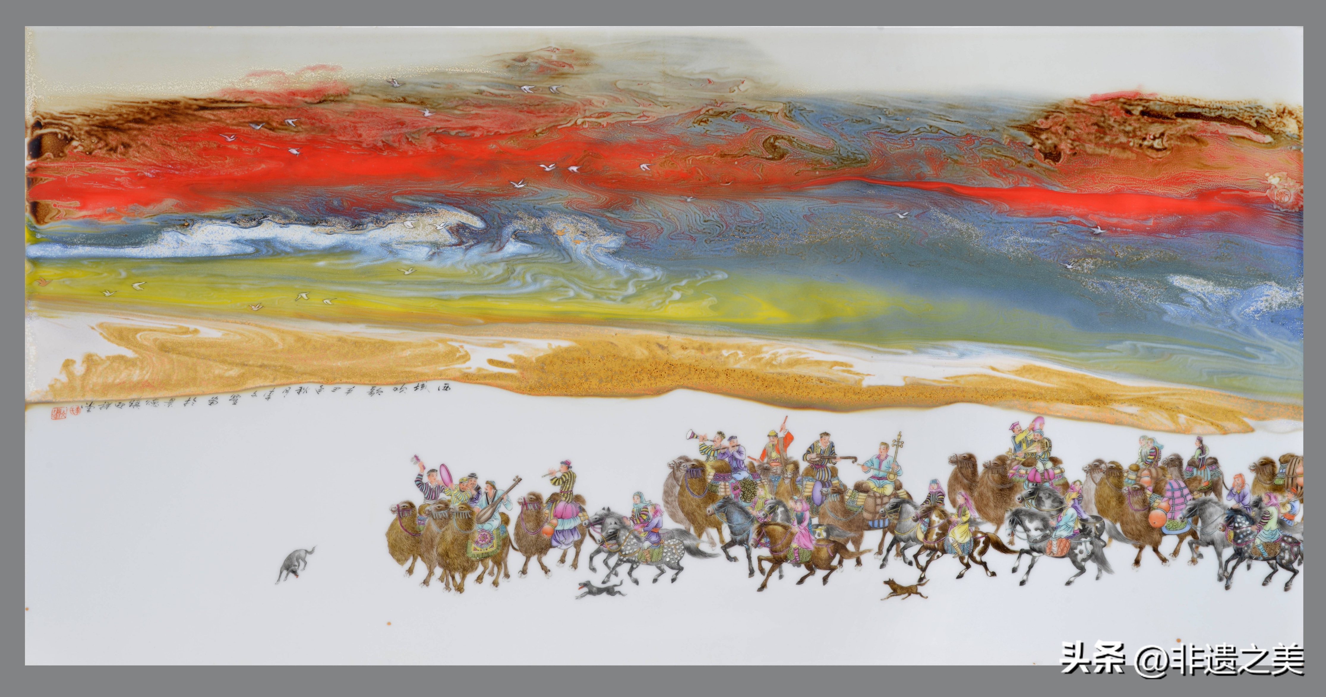 新时代粉彩、它在绘画表现材质上具有“跨界性”“综合性”特点;在工艺技巧上讲究“材质与绘画”兼备;在艺术特征上追求“工与艺”的结合;在作品格调上“主张传统文化意蕴与时代感相融合”深入思考艺术创作的方向,探索艺术创作在工艺表达的各种可能性,呈现出具有时代语言与时代精神的粉彩艺术作品。