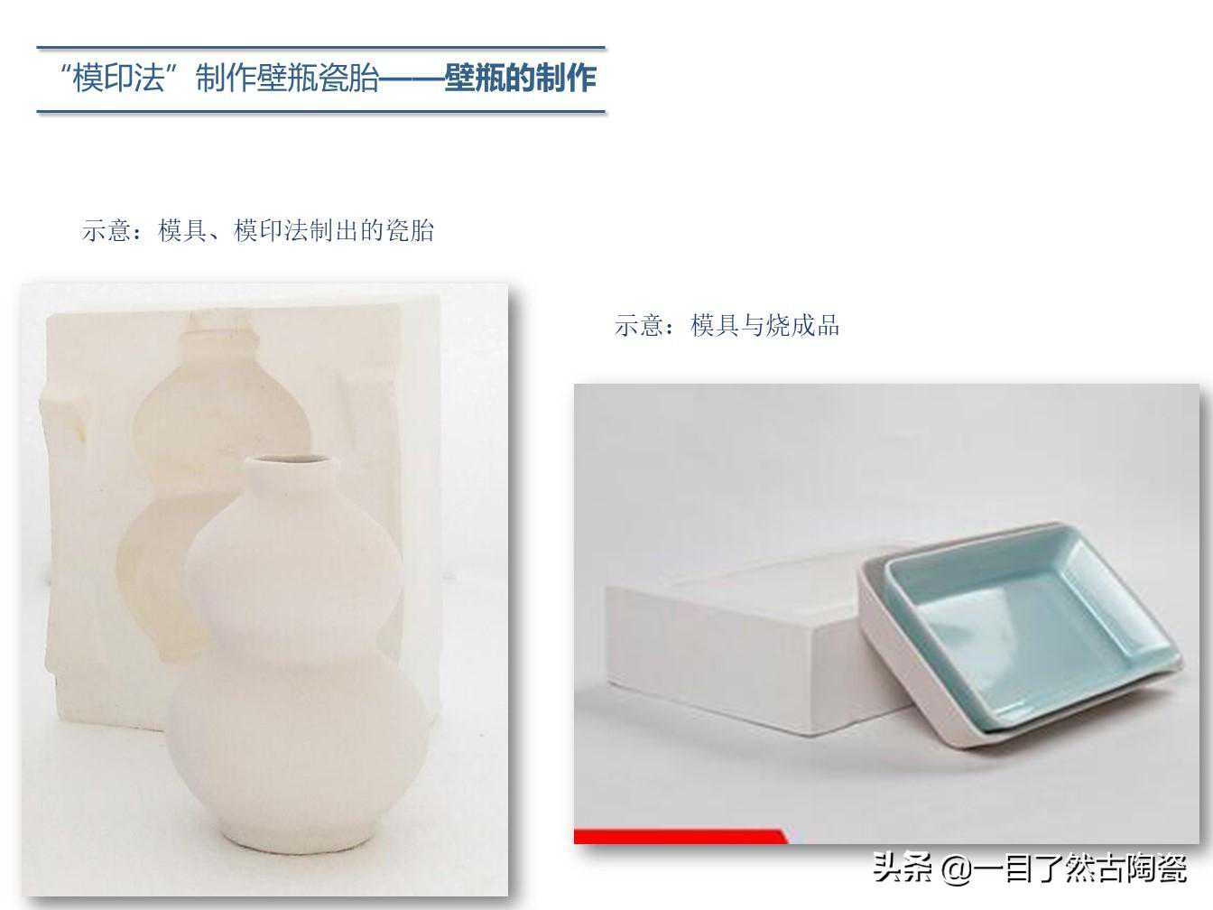 别担心,壁瓶的传统制作方法没有失传。从古至今,壁瓶的制作基本都是全手工的“印坯”法。1、预先做出各种壁瓶造型的模具;2、将制作壁瓶的坯泥揉制成均匀平整的泥片,放到模具里,贴在模具内壁,塑成壁瓶的外型;3、再用泥浆把壁瓶的背板和底座与模具里的壁瓶主体粘合起来;4风干缩水后,模具里的壁瓶坯胎自然就脱模出来了;5、最后再按照通常瓷器绘制和烧制的工序进行。