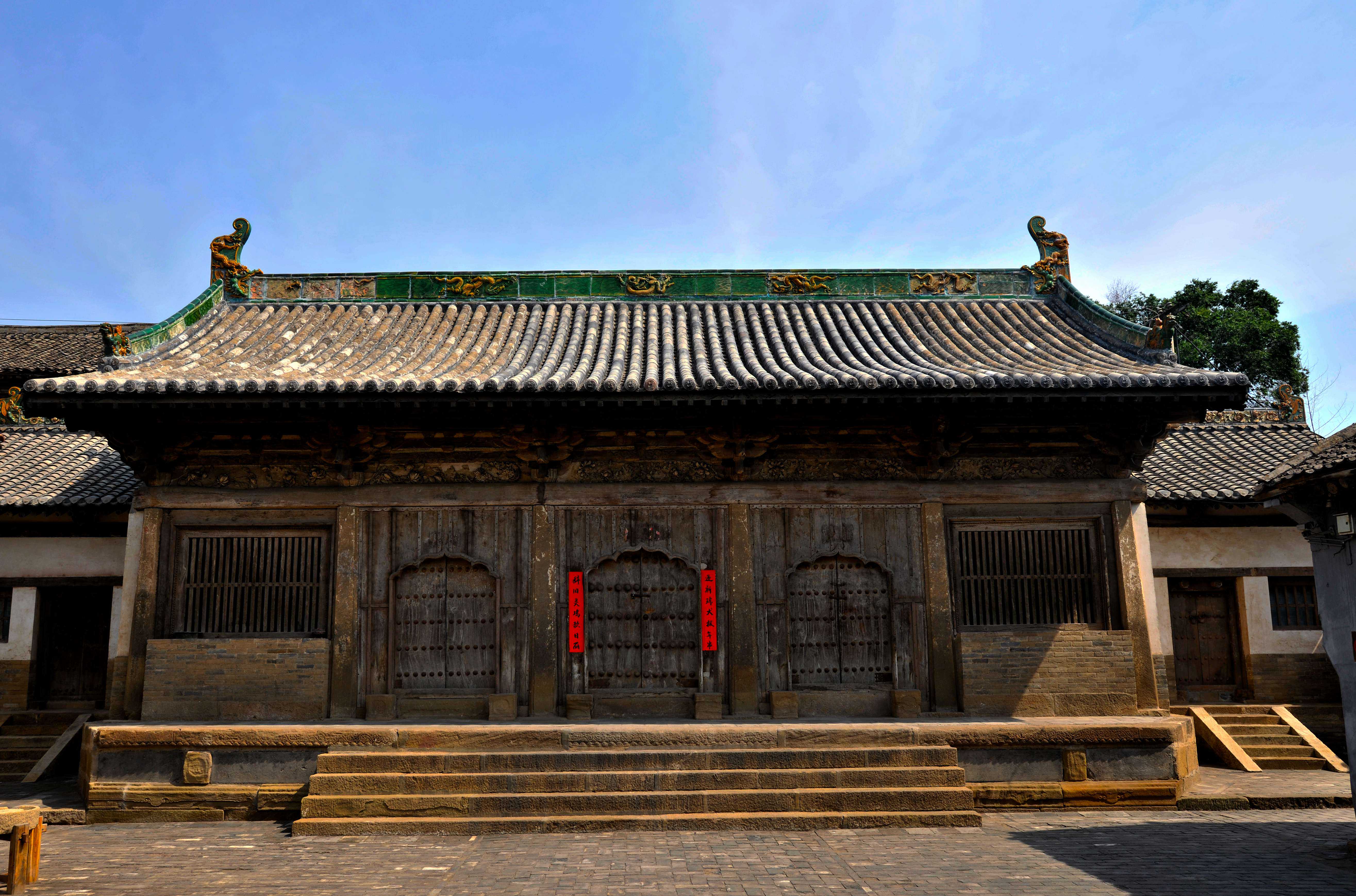 复始第为明万历三十一年(公元1603年)始建,一门高耸,两狮静卧,三雕精美,四围严合。正房四根通天砂石柱使这座民宅有了大气魄,传递着主人非同一般的胸襟和眼界。东、西厢房压窗石上的浮雕更是对主人品位的佐证,除雕有花鸟兽,还对应着刻有孝、悌、忠、信、义、廉、耻八字,南廊下是三米多高的砖雕“三元坊”大照壁。院深墙高,在此弥漫了数百年的儒家思想带着青苔的鲜湿气息依然浓郁,沁人心脾。