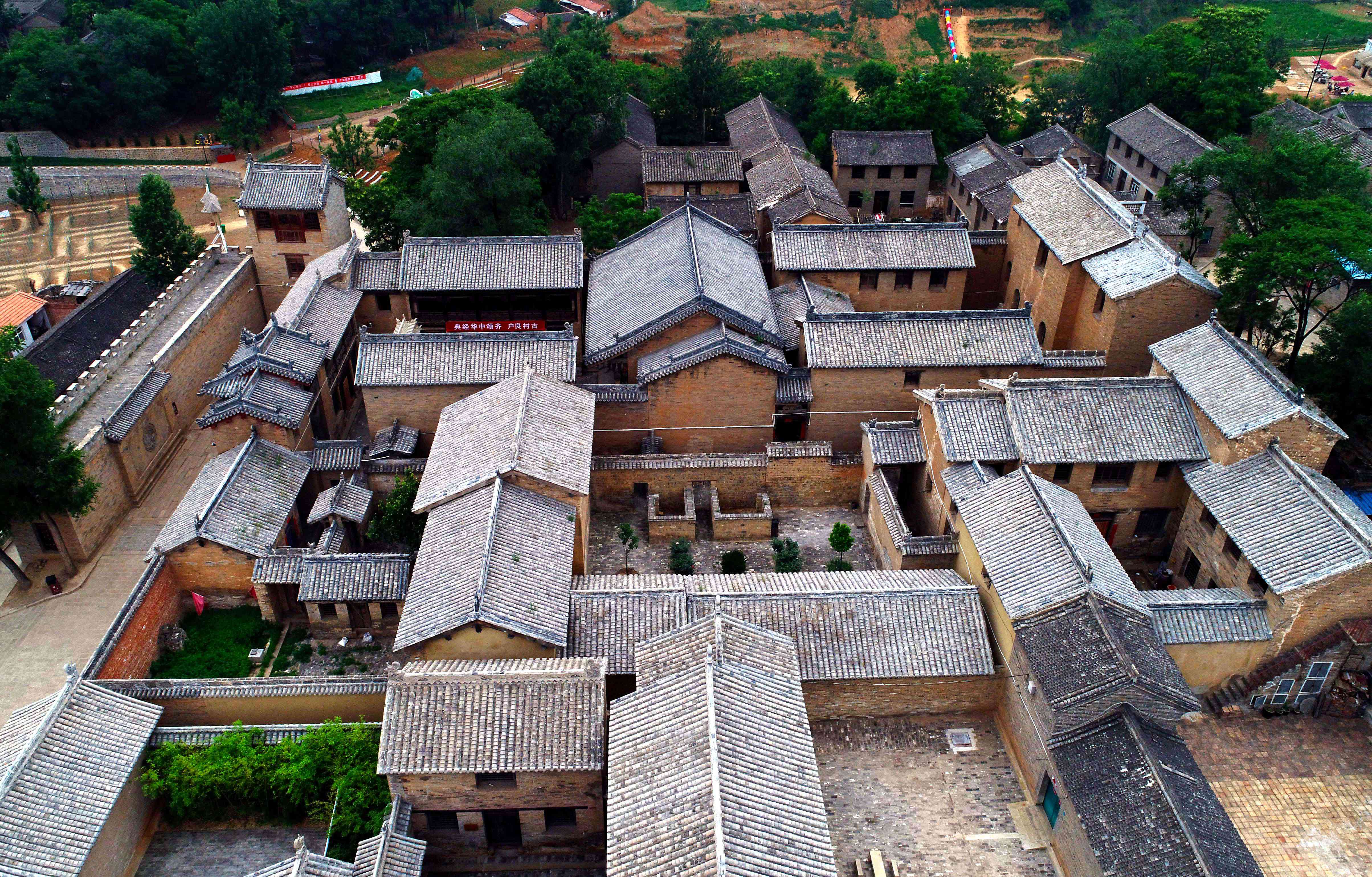 良户古村以祖师庙到观音堂为中轴线,西接西街、后街、太平街,东接东街和蟠龙寨。这是一座有着悠久历史记忆的村庄,早在唐代中叶,就有郭、田两姓家族在此建庄,始称“两户”。宋初,陆续有王、李、秦、赵、张等姓迁来,村落不断扩大,至元时已初具规模,村名也由“两户”改称“良户”。不过村中还有一种说法,村人介绍,详考村中现存历代碑刻了解到,良户一名取义吉祥,是因村落选址于三架大山梁上,形似凤凰展翅而得。为考证这一说法,记者随村民爬到村外的山岭之上,在村民的指点下远眺良户古村,隐约之形状果然极似凤凰。位于村中岭上的双进士院是凤头,东西两街为双翼,鸽子院后院是凤尾,田家后花园白果园则为尾翼。