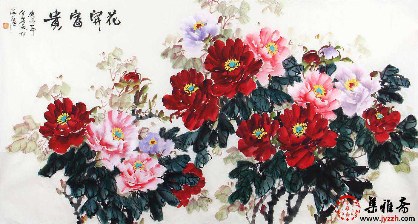 “阅尽大千春世界,牡丹终古是花王”、“雅称花中为首冠,年年长占断春光”,从古至今,文人对牡丹的赞咏之词浩如烟海。人们之所以喜欢国画牡丹,不仅仅是它那姹紫嫣红的花色、雍容华贵的气质,更在于它是集颜值、寓意、风水于一身的中国传统吉祥画!