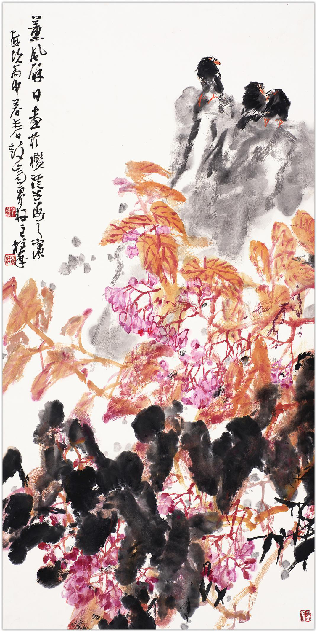 黎柱成的画具有浓烈的岭南特色,纵横均匀带来扑面而来的气息,尤其是他的传统程式和新题材的把握,处理的非常好,他的花鸟画的题材很多,包括海棠、牡丹、木棉都非常有特点。这些传统的题材又是非常难创新的题材,他用自己独特的表达方式呈现出来,是非常难得的。