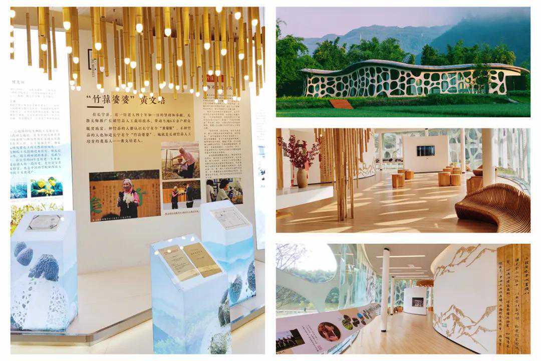 永江村·会客厅:以长宁特产长裙竹荪为原型,包括竹艺展区、休息区、模范道德人物展区等,展示永江村特有的风土人情和有趣的乡村故事,为游客介绍永江村的发展理念。永江村是坚持实施乡村振兴战略,围绕“竹创乡村,幸福永江”定位,以竹食健康体验地、竹雕文化创意区、竹文创体验培训点为主的绿色低碳生态环保乡村。