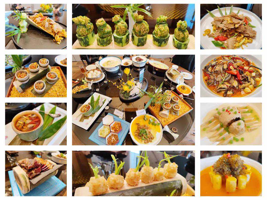 来到君悦山庄一定要品尝这里的全竹宴。全竹宴是蜀南竹海旅游度假区的著名风味系列菜品,以竹笋、竹荪蛋、竹荪、竹菌、竹海腊肉、竹筒豆花、竹筒饭、竹荪酒、竹泡菜等“竹”菜汇成,故又被亲切的称为“熊猫宴席”。