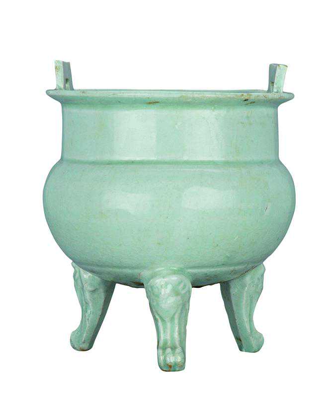 图12南宋龙泉窑青釉弦纹三足樽式炉(二级文物)