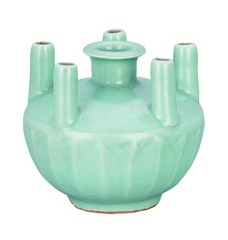图20南宋龙泉窑青釉五管器(一级文物)
