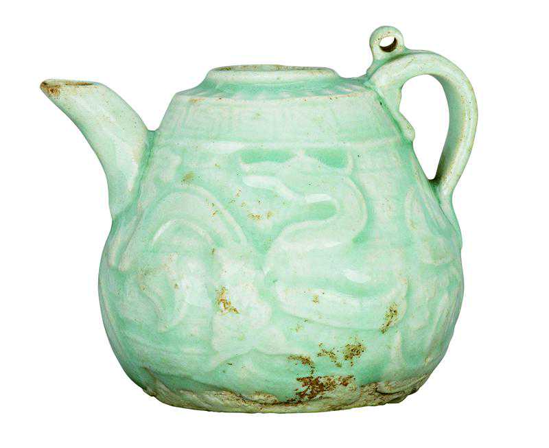 图23南宋景德镇窑青白釉印花云龙纹水注(二级文物)