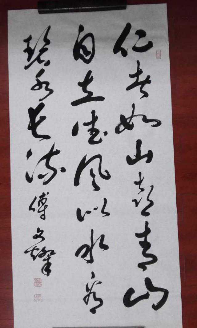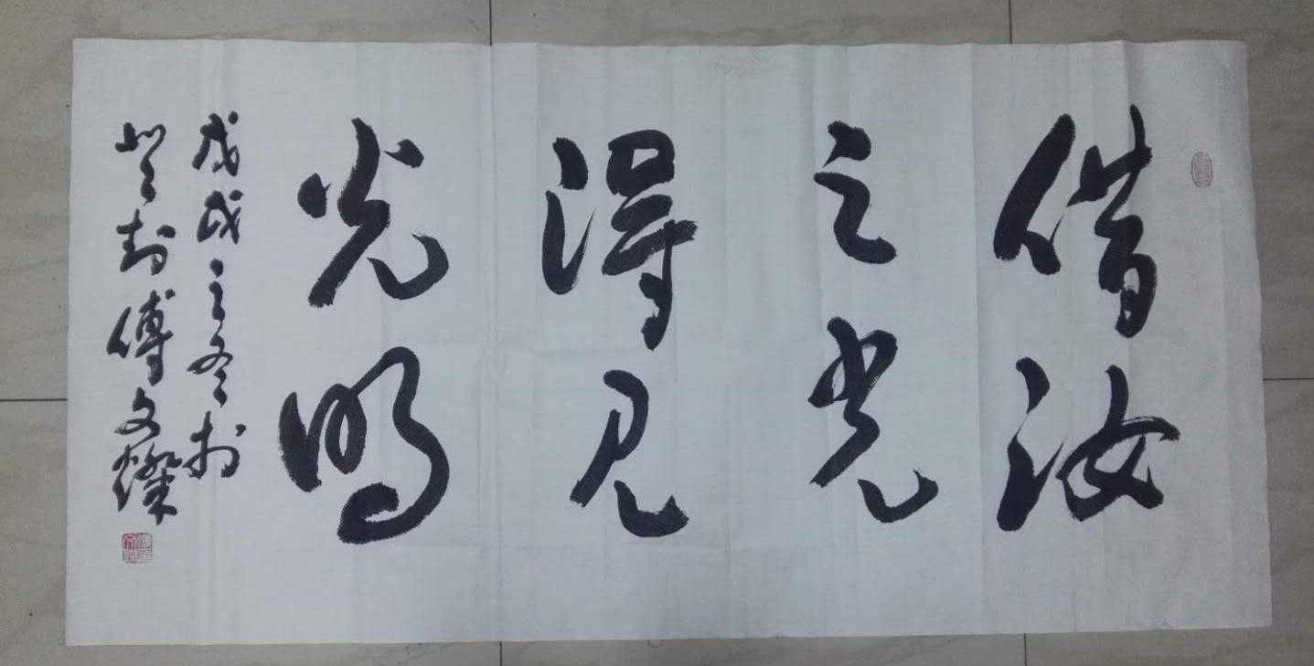 傅文灿对故乡的山山水水、一草一木、寸土片石有着深厚感情。步入社会几十年来,从一个朴实、善良、勤劳的农民儿子,逐渐变成德艺双馨的书法名家。丰富的社会阅历和多方面的专业知识使他的思想境界不断升华。他不仅酷爱书法,临池不缀,而且博览群书,操笔撰文,文笔言简意赅,清新可人。近年来,更是热恋乡土,足遍山岭,录遗写新,收入巾毫。情系翰墨,孜孜以求,倾身心投入到书法艺术中去,对书法的理解产生了质的飞跃。经过不懈努力,终于把书法创作和人生体验融为一体,形成大度浑厚、雄健潇洒的行草书风貌。得到专家称道,深受大众喜爱。他的书法作品广为名山大川、碑廊、馆所、机关团体、故里、名寺,大陆和港澳台及东南亚友人堪石悬匾,厅堂悬挂,书画同道青睐和收藏。