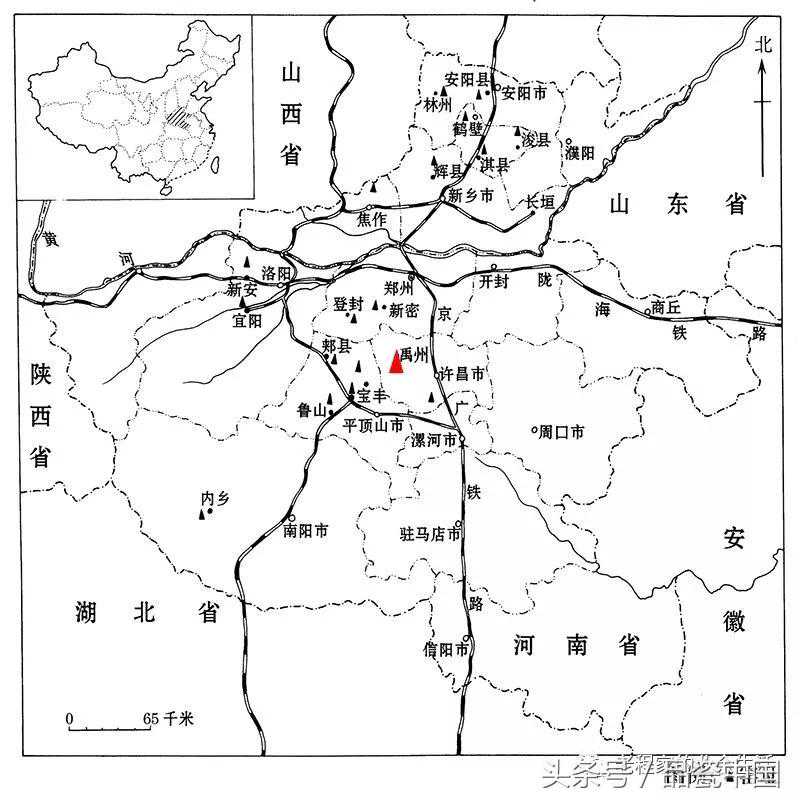 钧窑遗址所在地及河南地区古陶瓷重要窑址分布图