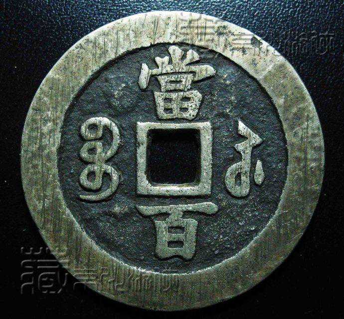 今日赏泉,检点愚帐中所藏,却见又一品宝苏咸丰元宝当百钱,版式并不稀罕,然材质是白铜铸就,可谓十分的罕见。因此,特将其帐中择出,拍照亮相,发于博客公展,以飨泉好。
