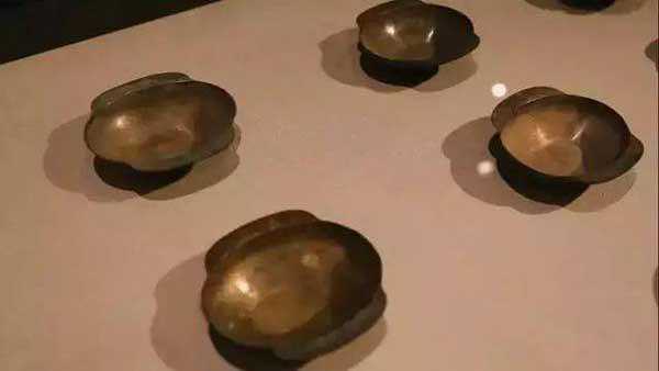 罗勋章分析,这些金光闪闪的耳杯并非黄金制作,而是黄铜(铜和锌的合金)制成,因此本色为金黄色。被铜盒层层包裹的耳杯,几乎与外面的空气隔绝,不易氧化,故能保持本色。由此看来,这套餐具随葬时似乎是还没有使用过的新餐具。