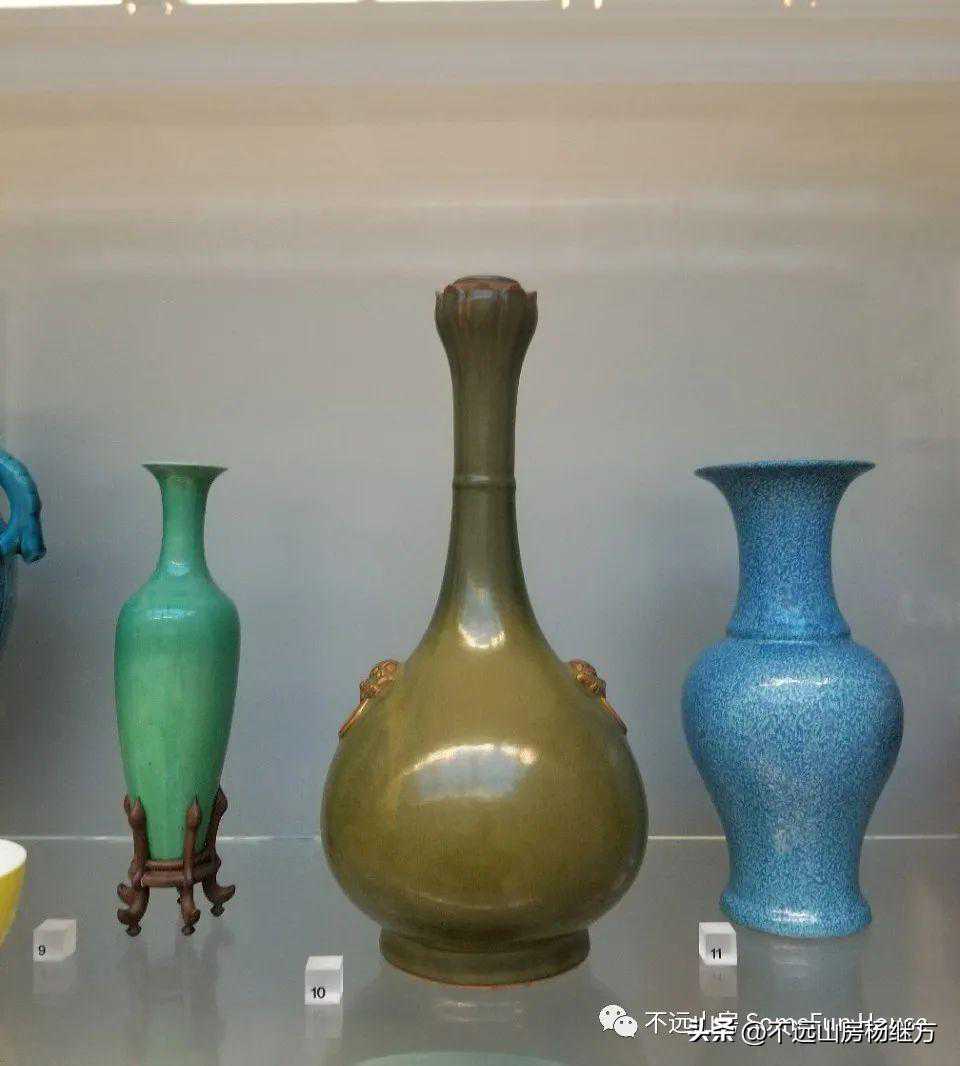 英国VA博物馆藏雍正绿釉柳叶瓶茶叶末釉蒜头瓶炉钧釉敞口瓶