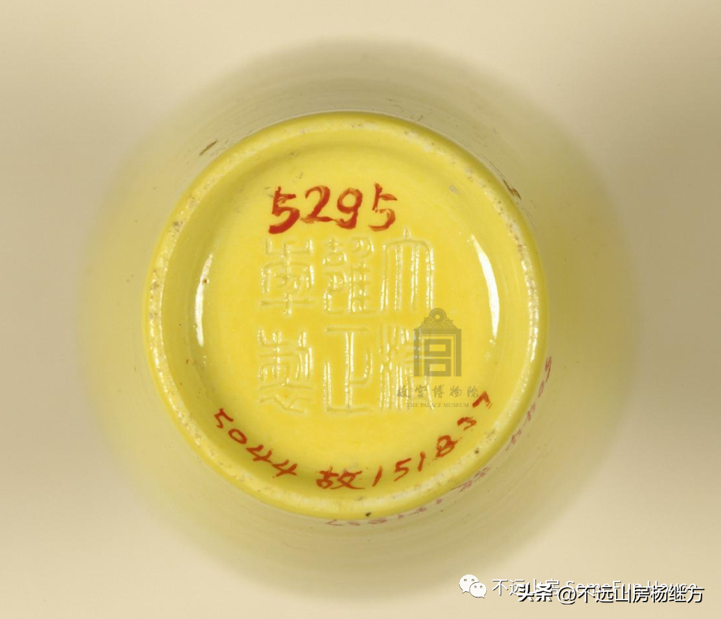 日常餐具方面,皇帝、皇后可以无定额地使用最尊贵的黄釉器皿,皇太后份额下,每年供应“黄瓷盘二百五十个,各色瓷盘百,各色瓷碗五十。”皇后略少,用“黄瓷盘二百二十,各色瓷盘八十,黄瓷碟四十,各色瓷碟五十,黄瓷碗百,各色瓷碟五十。”以此类推,皇贵妃使用里白外黄瓷,贵妃、嫔妃、贵人、答应、常在位序的中下等嫔妃们则与纯黄器无缘。“雍正十一年十二月十二日茶房笔贴式常宁送来散秩大臣茶饭房总管马哈达等咨称、本房奏茶饭房黄瓷碗、黄磁盅现不足用,饭房欲添二等黄瓷碗三十件、三等黄瓷碗二十件,黄磁盅三十件,茶房欲添黄磁盅二十件,共添一百件。……请海望行与该处烧造等语……奉旨:交总管取用。钦此。”雍正传旨:“本月十三日查房笔帖士金大鹏送来黄瓷碗样两件,黄瓷盅两件,呈内大臣海望看过。传:着将原碗、盅样交内务府总馆年希尧家人郑天锡,转发江西烧造瓷器处,照样烧造一百件,限一百日内送来”