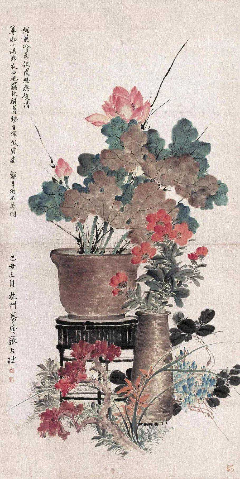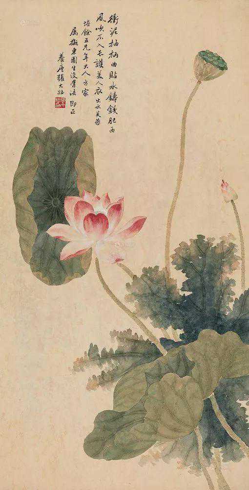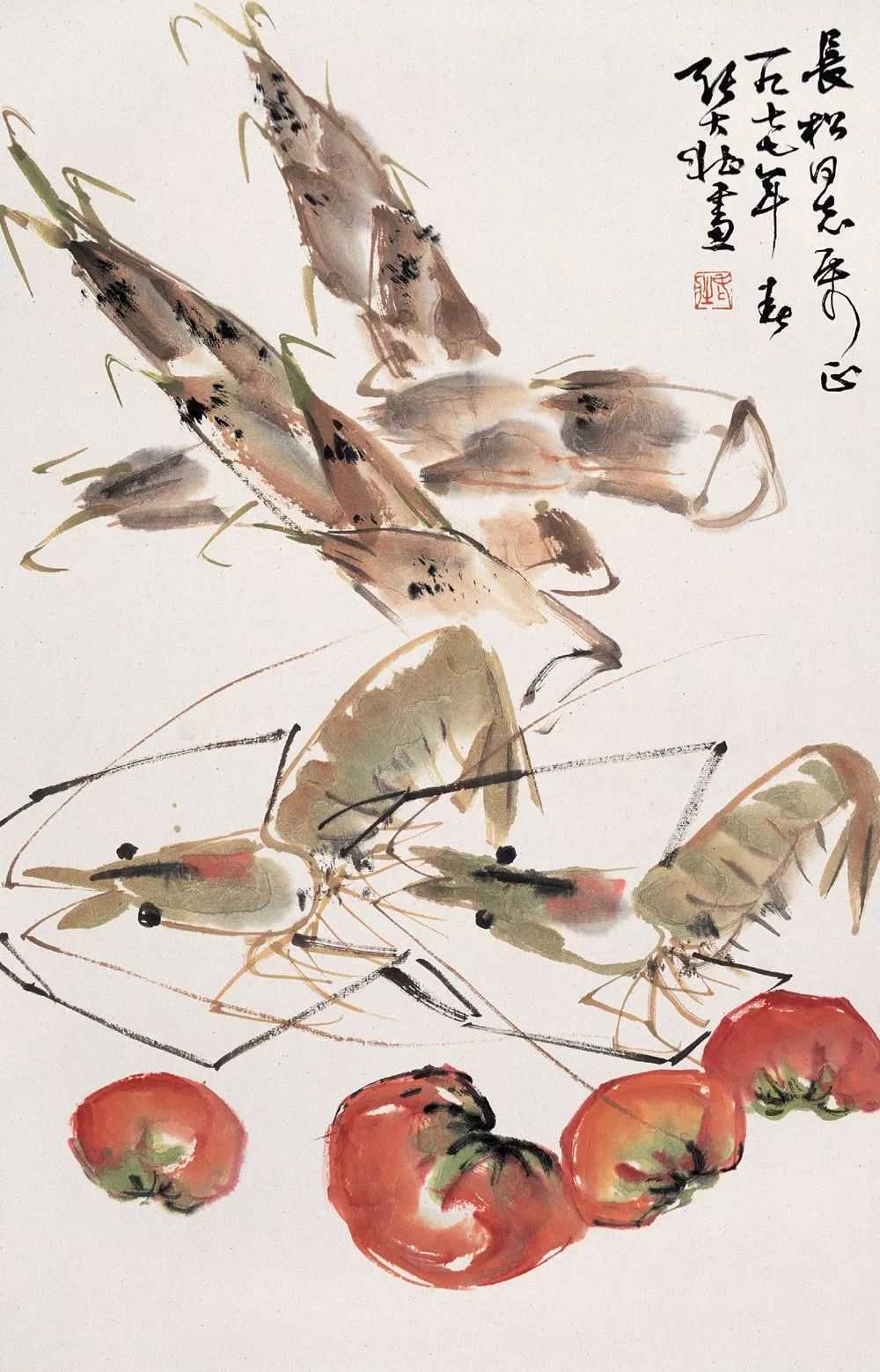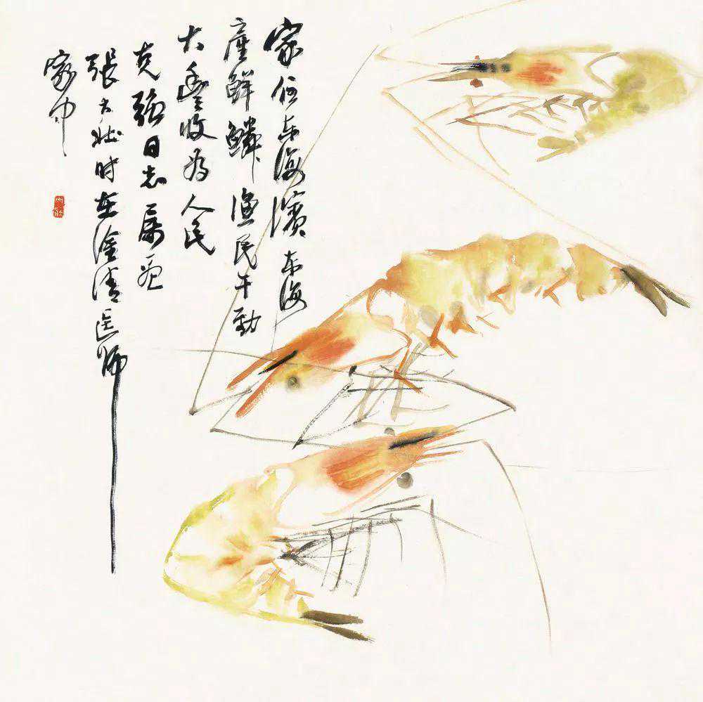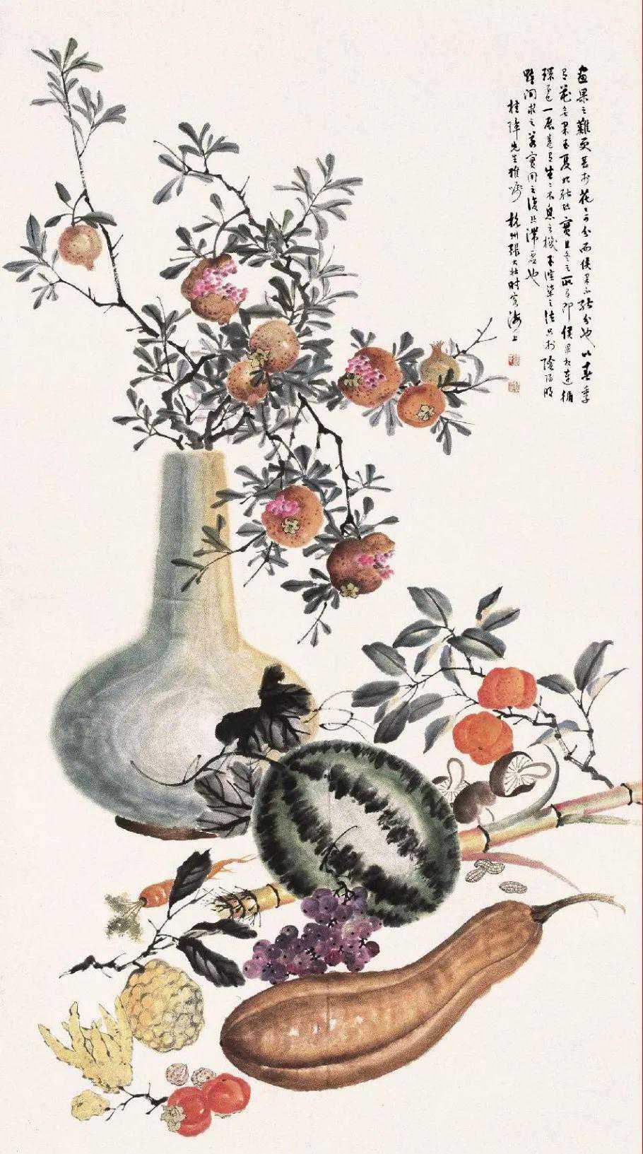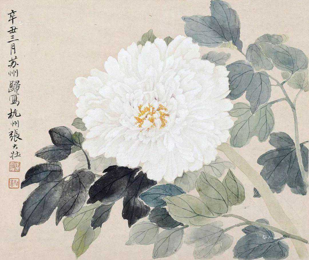张大壮1916年到上海,随李汉靖学习恽派花卉,又从汪洛年习山水。1920年入商务印书馆任美工,次年为收藏家庞济元“虚斋”管理书画,得览名迹,心摹手追,画事大进。晚年渐涉徐渭、陈淳、朱耷等人,笔墨老辣,纵放洒逸;他特别喜欢画蔬果、虾蟹之类,生动活脱,别具韵致;偶尔画山水,风格近王原祁,用笔生涩清劲。