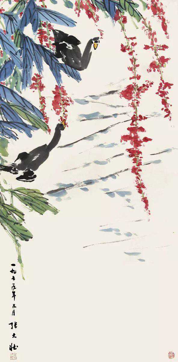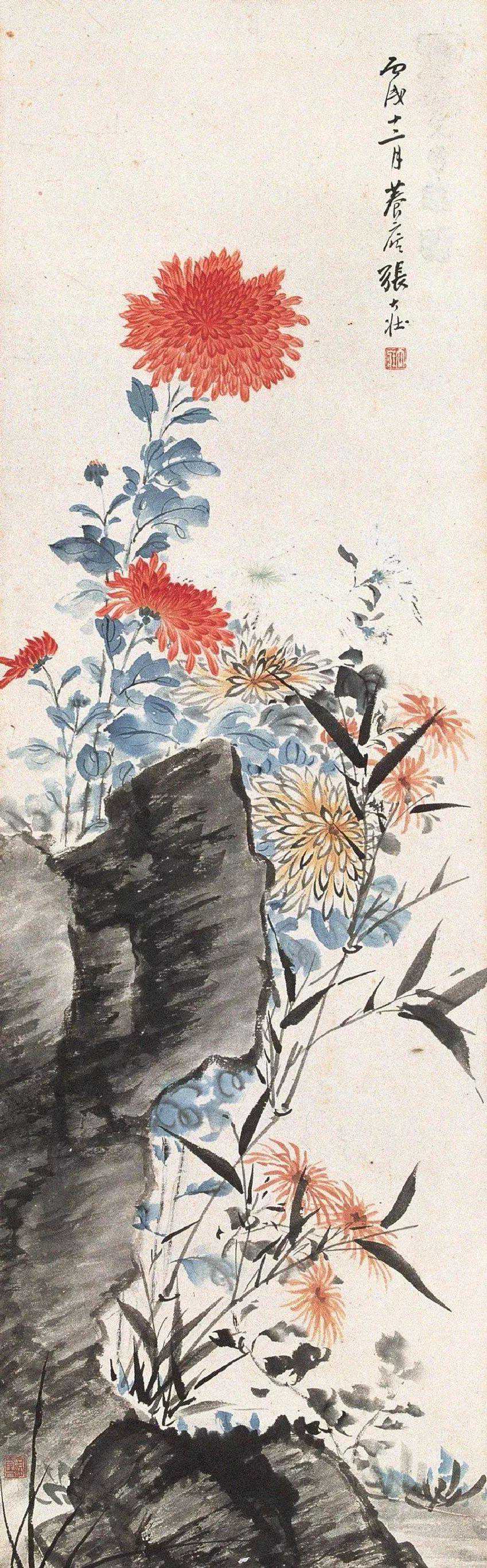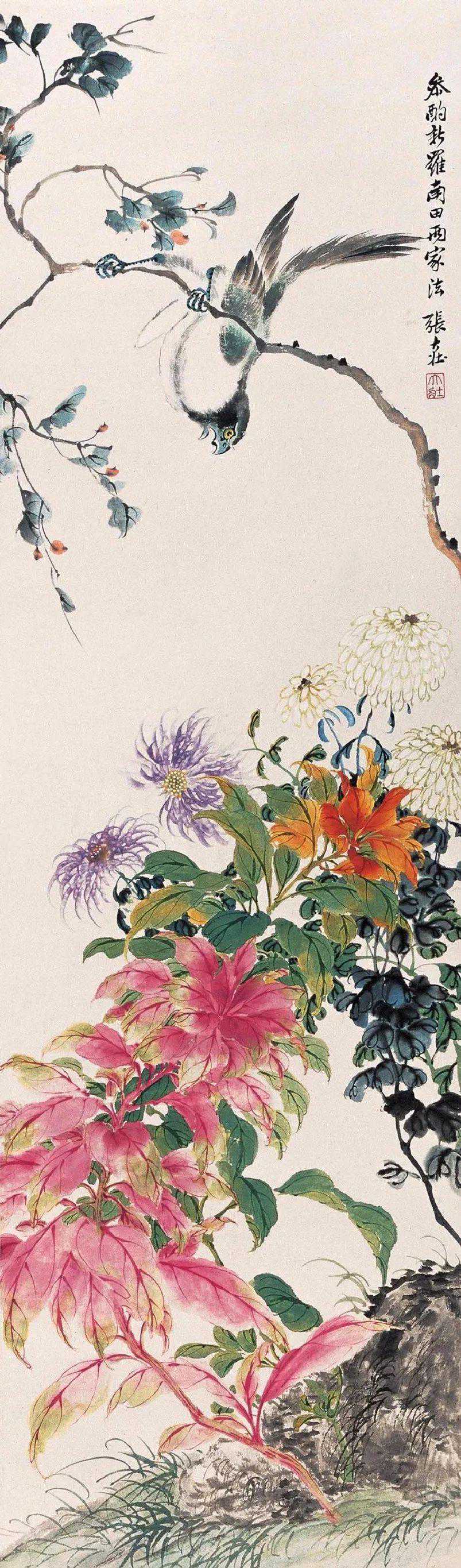 张大壮晚年,一天晚间,张的学生、朋友来了五六个人,话题谈及中国画构图,有人说,物象安置画幅当中,乃构图大忌。大壮先生不以为然,他认为处理得当,仍是一幅好画。于是由闲谈发展成争论,争论到最后,座间众人一致意见:“你张先生既力排众议,就请当场挥毫,如何?”出乎大家意料,张先生一边走向画桌,一边嘟囔:“画就画,有何难哉!”