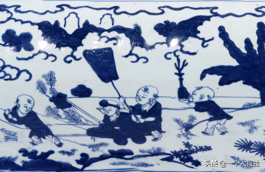 明崇祯青花百子图大笔海