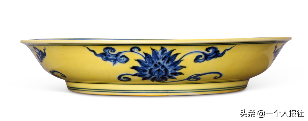 明正德黄地青花折枝花盘