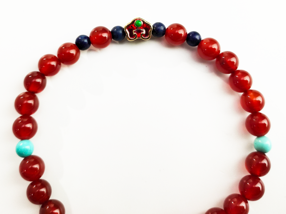 绿松石、青金石还有珐琅彩与红玛瑙的红色相映相衬,珠光闪耀,绝色腕间绕,尽显东方风雅。