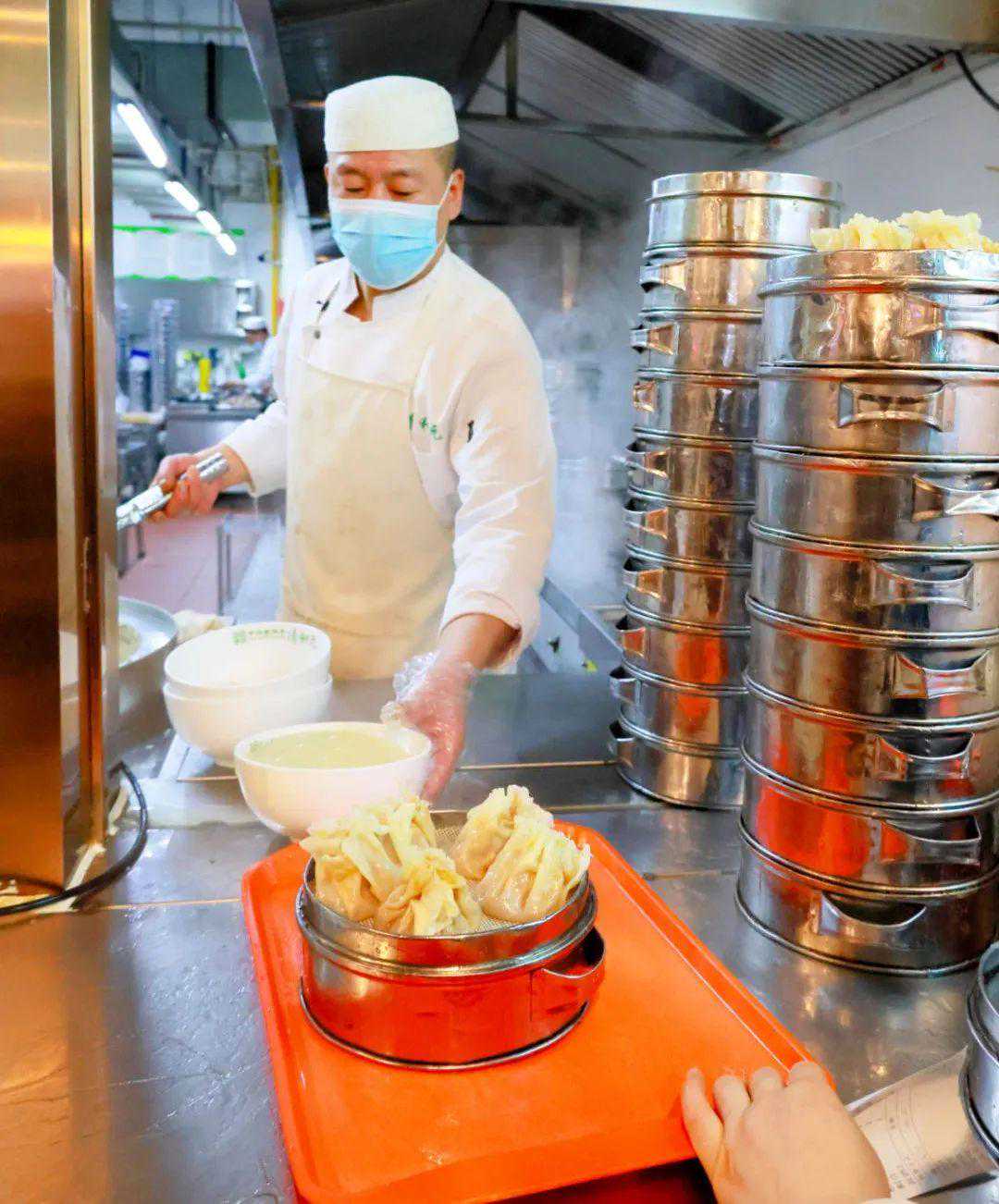 不到七点,第一拨食客还在享用自己赶早买到的早餐时,店内已经排起了长长的队伍。人们在队列里闲聊,窗口内的厨师和员工马不停蹄地默契配合。隔着窗口,悠闲和忙碌的两种模样清晰地展现在眼前,光这场景,就让人觉得十分踏实。排队的人有序地从窗口领取自己点好的餐食,为着这一口热乎的美味,大家早已在耐心等候上达成了共识。端着餐盘的顾客穿梭在大厅里,人们的交谈声如背景音般回荡,热闹的氛围让人心生温暖。