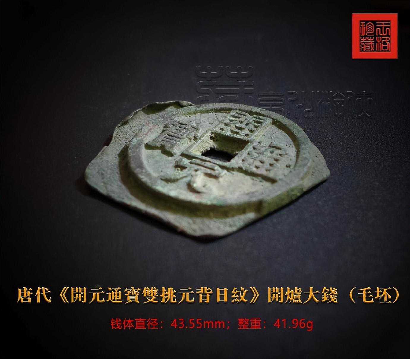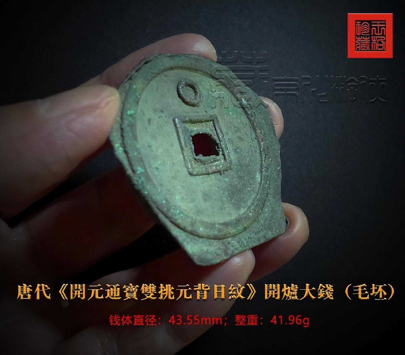 以下为愚在今年6月22日所展示之唐“开元通宝双挑元背日纹开炉大钱”成品图照,可见其书相与毛坯钱一致,钱体铸相以及厚薄皆相同,可得力证。