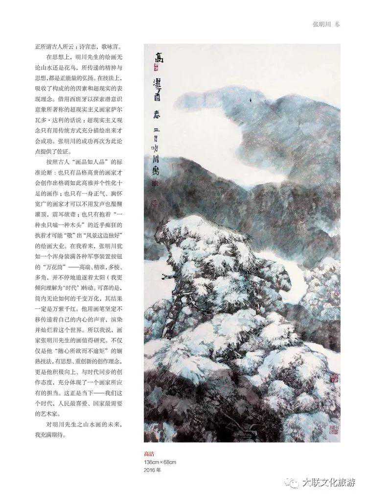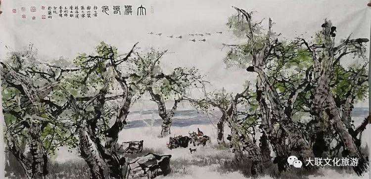 他们的作品雄伟豪迈,苍茫清远,烟雾迷漫,皴擦怪异,点画剔透,功力深厚。展览中作品画面都呈现一种情景交融,自然天成的清远高旷,正大光明之气象;天高地迥,宇宙洪荒之寓意;恰如其分的体现出北派山水艺术家精英们与大千世界同呼吸与人民大众共欢乐的至高人生境界。