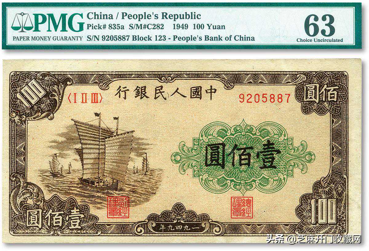 第一版人民币“大帆船”壹佰圆,估价:RMB100,成交价格:RMB55200