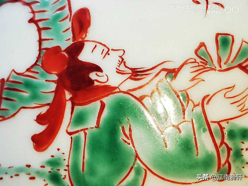 红绿彩瓷器也常称为“宋加彩”或“金加彩”。红绿彩瓷器上常以白釉为主要底色,以洁白的釉色和大面积的红彩相配合。红绿彩瓷的色彩主色是红、绿、黄三色,但每种彩又有深浅不同的色阶。红彩是以铁为呈色剂的矾红彩,用青矾加热、煅烧而成,最大的特点是将彩施于器表之前就已呈现红色,在施彩时就已知道其烧成后的呈色。红彩一般为正红色或称枣红色。绿彩则有翠绿、墨绿、褐绿和浅翠绿等不同呈色,这是在配制彩时控制呈色物质而有意造成的。黄色则有浅黄、明黄和金黄等色。红绿彩瓷常与釉下棕褐彩和黑彩相配合,是宋、金、元时期瓷器制作艺术中的一个重要器物。红绿彩瓷器的名称极为真实形象,它是指主色调用红彩和绿彩绘制的釉上彩绘品种。所谓红彩,是以青矾、牛胶等为原料炼制而成,烧成后呈不透明红色,在粉彩出现之前的釉上彩中使用极广。所谓绿彩,是以铜花为主要原料的釉上彩,在氧化气氛中呈绿色。绿彩虽然能配比烧出不同色阶,但在红绿彩中一般仅呈现一种色阶。红绿彩瓷是在高温烧成的白瓷上以红、绿、黄等低温颜料彩绘,再进行第二次低温烧彩而形成的彩绘瓷。绘制金彩者,则还要进行第三次烧制,并称之为“红绿彩加金彩”。还有先施黑彩,烧成后再做红绿彩彩绘的。由于红绿彩主色为红。磁州窑红绿彩技法形成于金代。这一时期女真统治者及贵族生活趋向奢侈豪华,并推崇大红大绿风俗,红绿彩技法在此背景下出现,成为金代磁州窑最富特色的装饰技法之一。