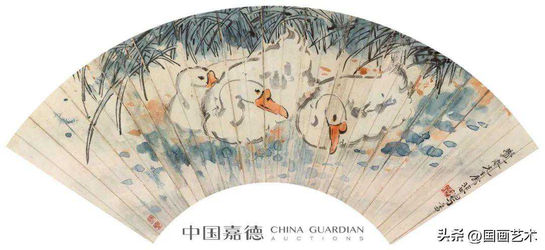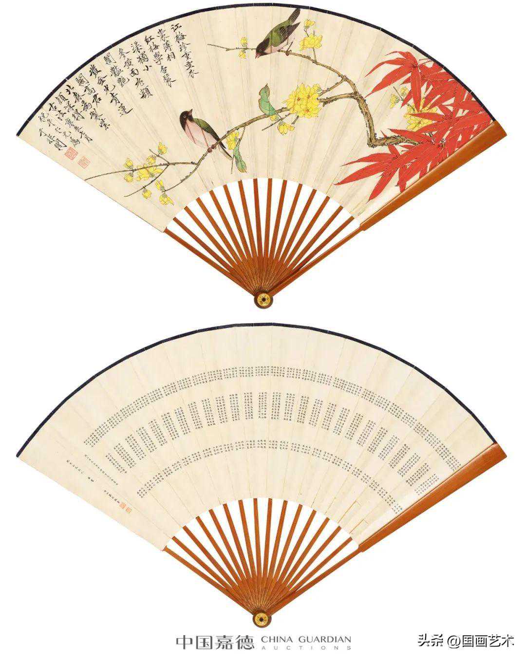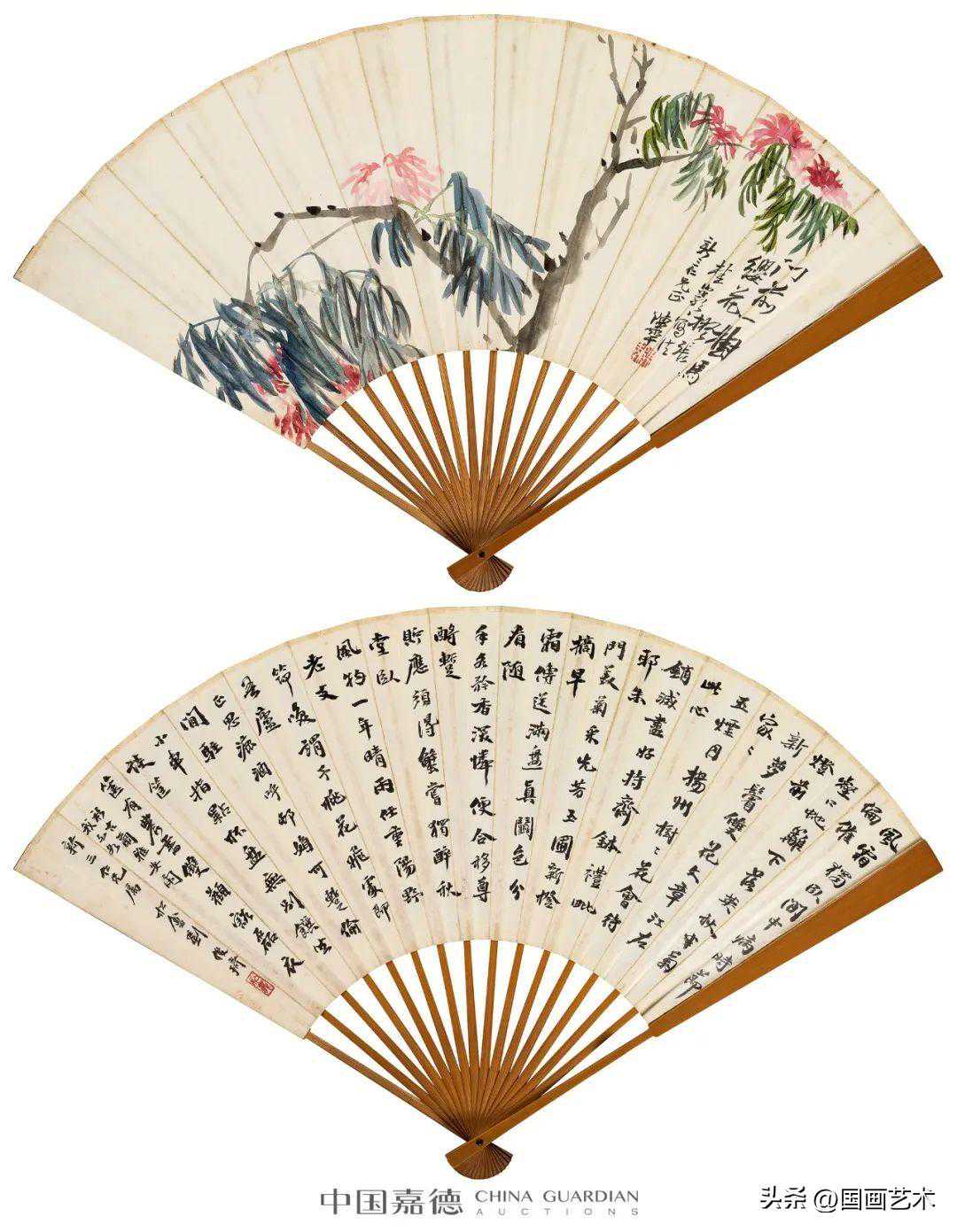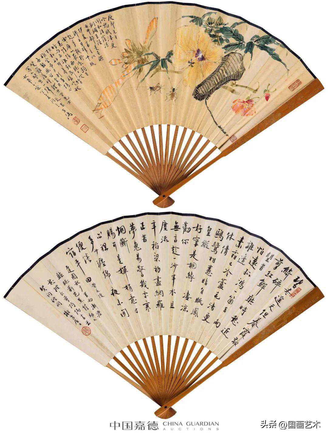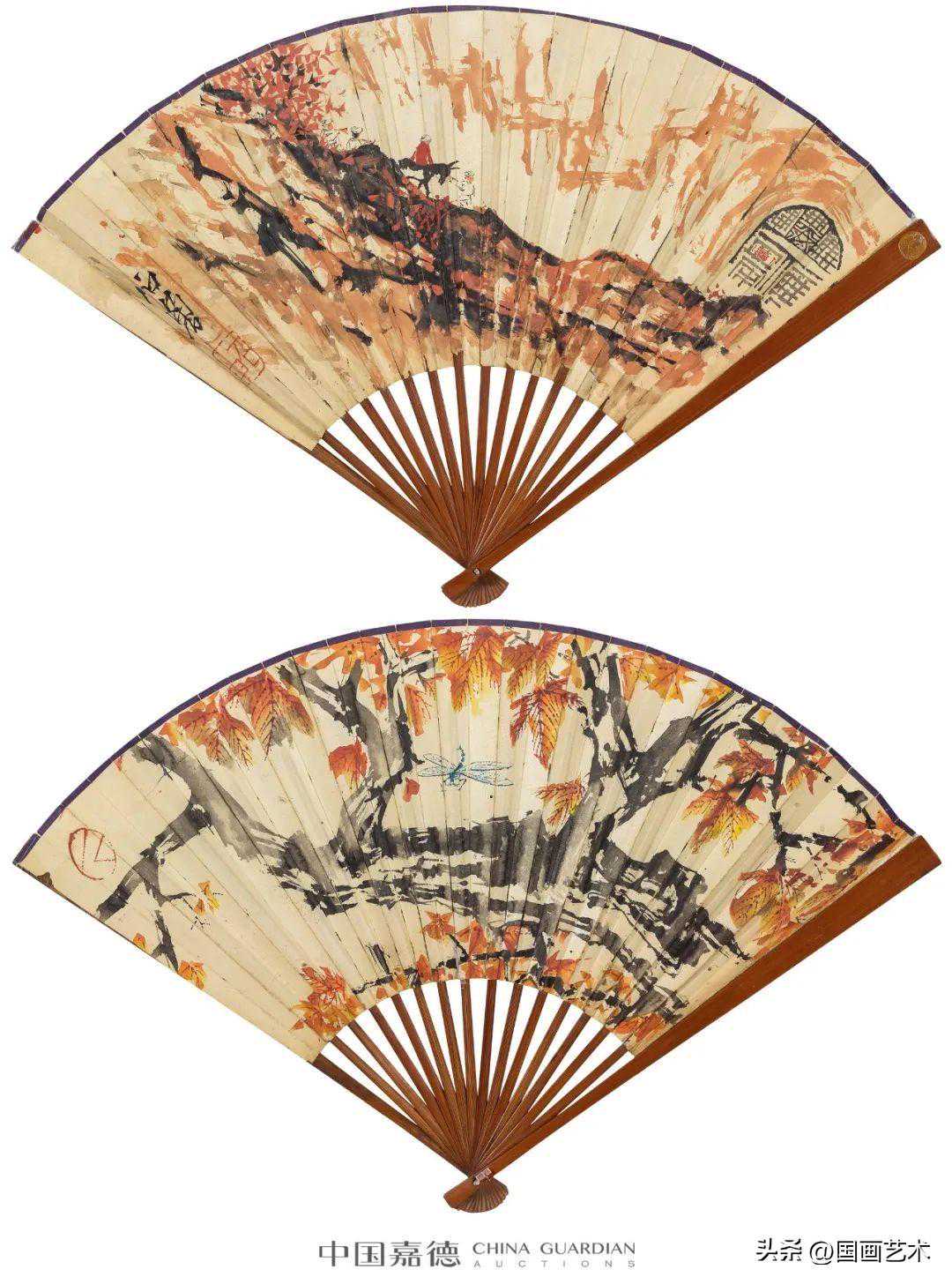设色纸本、水墨纸本成扇