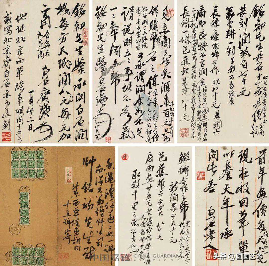 (一)铭初先生共石十一方,共价四十一元九角(北京石价贵过金玉),共刻润二百七十元。篆书联一对呈教,不言润金。长条一条虾蟹,合作,四尺八十元,尊上款。扇面交换,不言润金。(请先生以一扇面用与白石来书之字体写上,署白石二字上款,并请代求赵少昂君画蝉一面,寄我幸甚望甚)长条一条芭蕉,款襄尧,八十元。